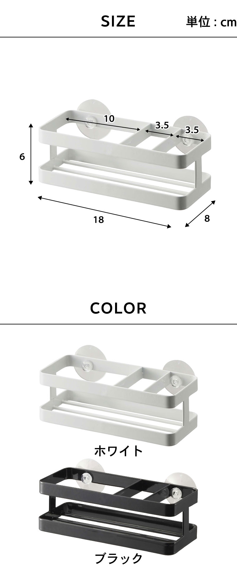 ●商品サイズ:約18X8X6cm ●商品重量:約330g ●素材・材質:本体:スチール(ユニクロメッキ+粉体塗装) ●付属品:吸盤(PVC)×2 クッション×4 ●耐荷重:約1kg ●JANコード:4903208067713 4903208067720