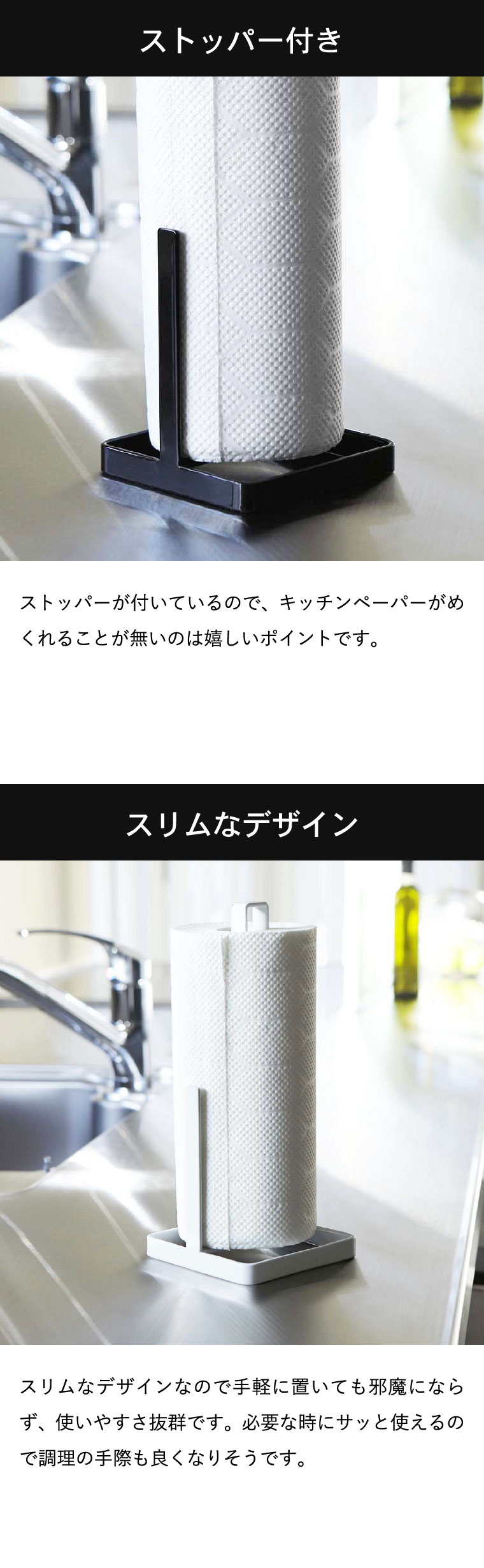 キッチンペーパーホルダー タワー 山崎実業 tower ホワイト/ブラック 6781 6782 タワーシリーズ