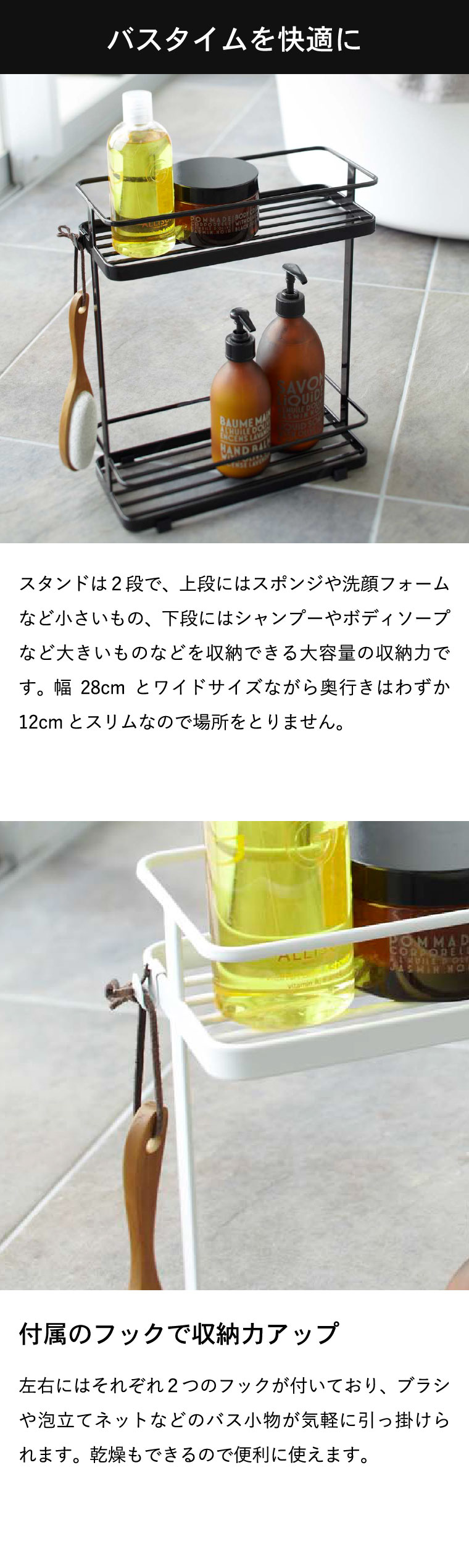 ディスペンサースタンド ワイド タワー 山崎実業 tower シャンプーラック ホワイト/ブラック 6790 6791 タワーシリーズ