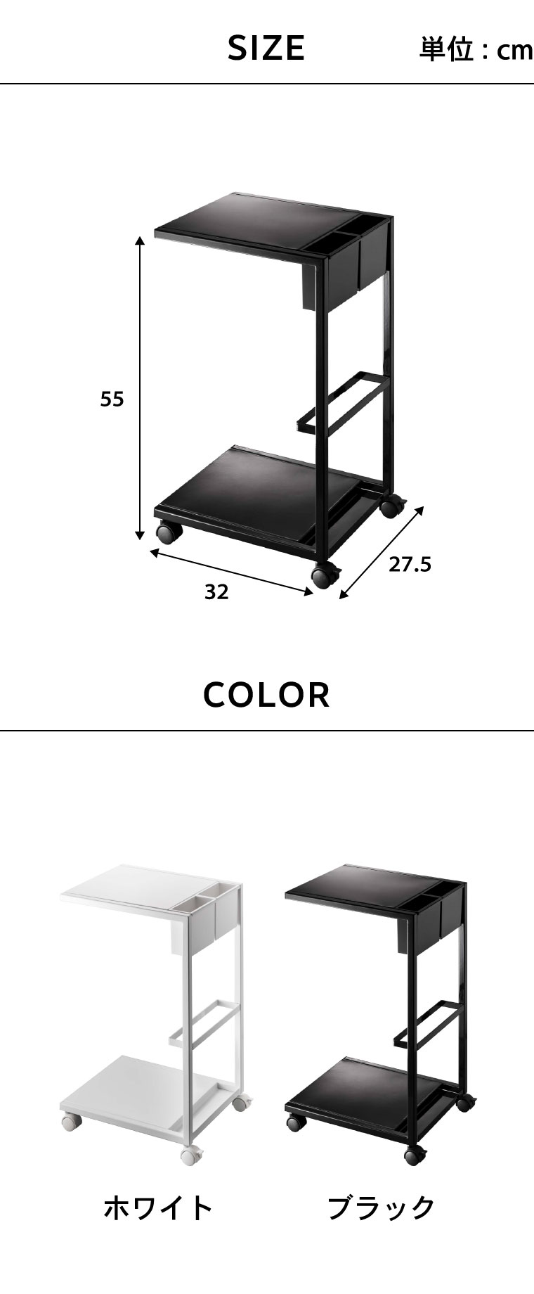 ●素材・材質:本体:スチール(粉体塗装) ポケット:ABS樹脂 キャスター:ナイロン樹脂