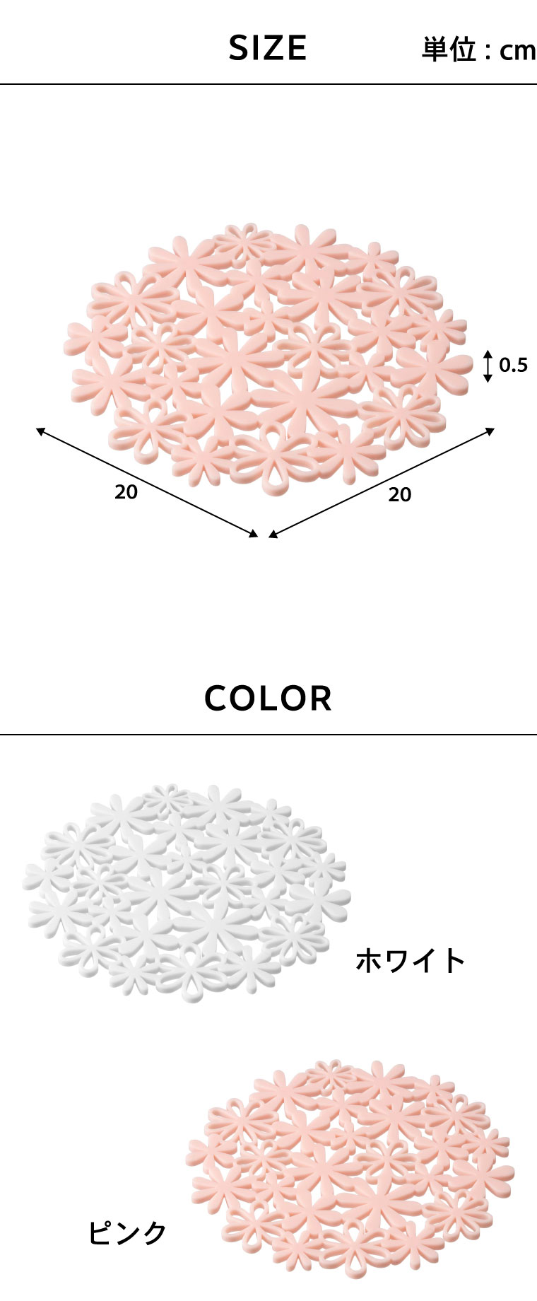 ●商品サイズ:約20X20X0.5cm ●商品重量:約100g ●素材・材質:本体:シリコーン ●耐熱:180°C ●耐冷:-40°C ●JANコード:4903208076791 4903208076807
