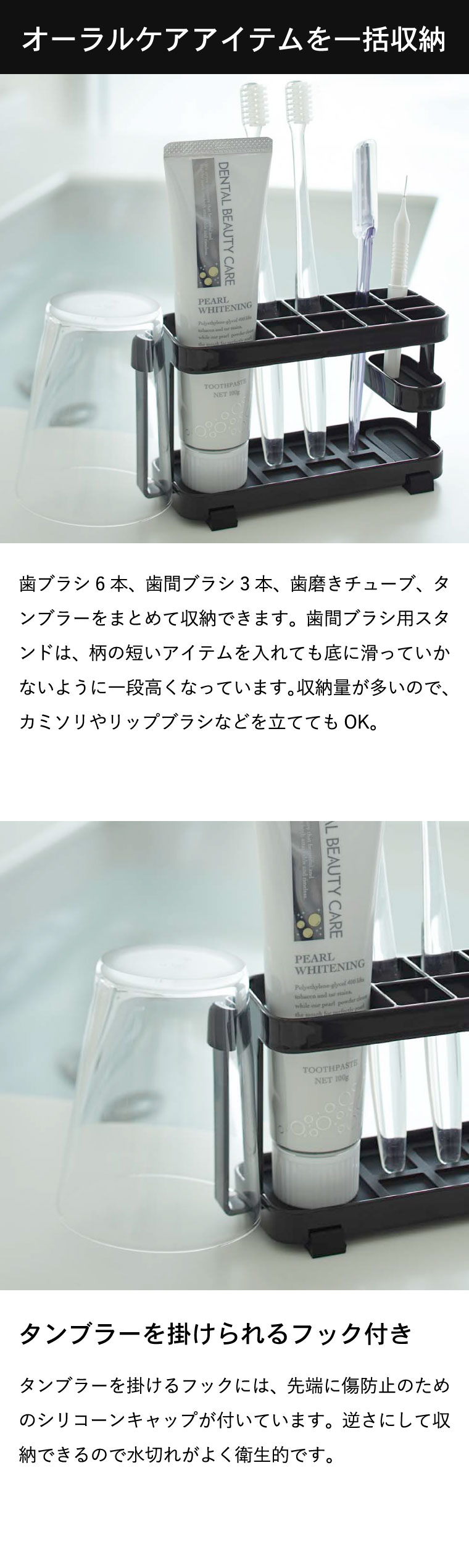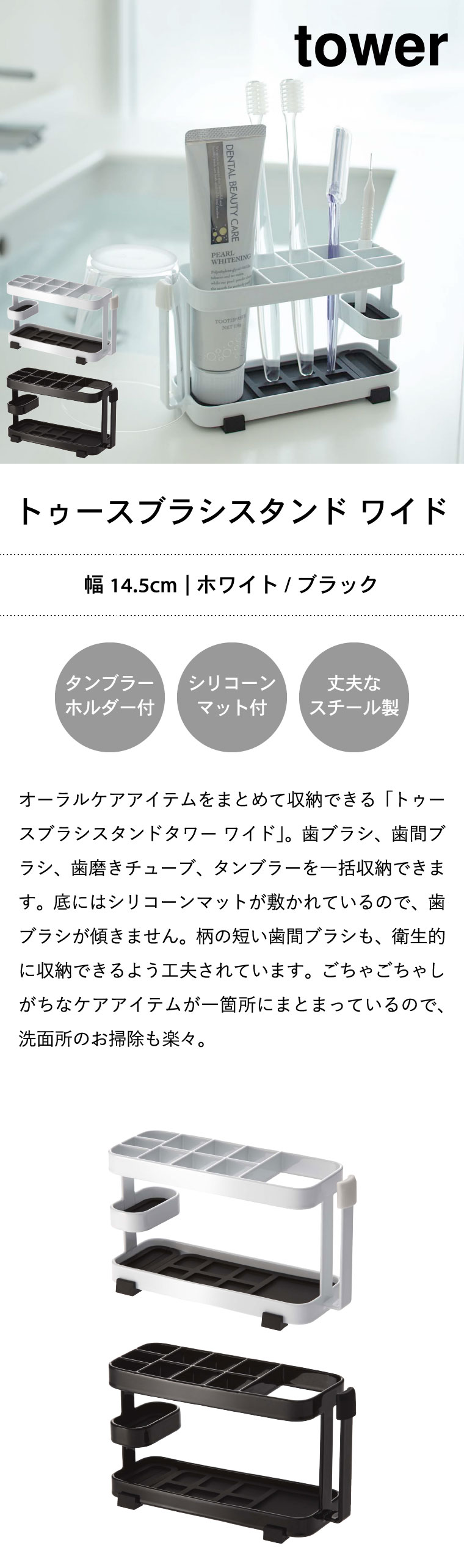 トゥースブラシスタンドワイド タワー 山崎実業 tower 歯ブラシ立て ホワイト/ブラック 7848 7849 タワーシリーズ