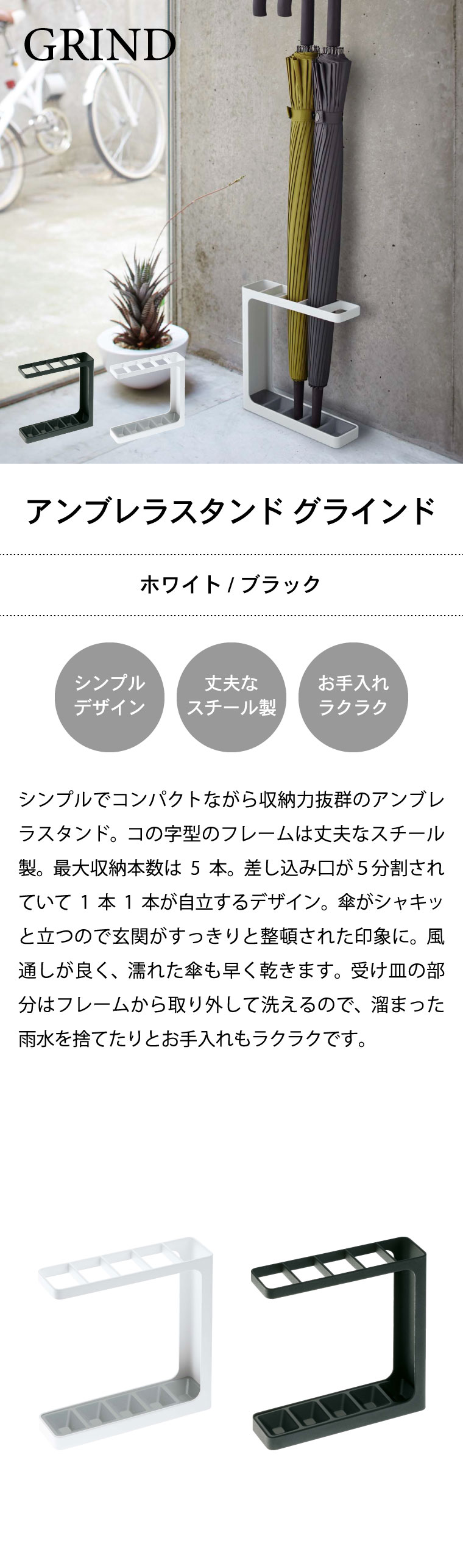 アンブレラスタンド グラインド 山崎実業 GRIND 傘立て ホワイト/ブラック 7930 7931 タワーシリーズ