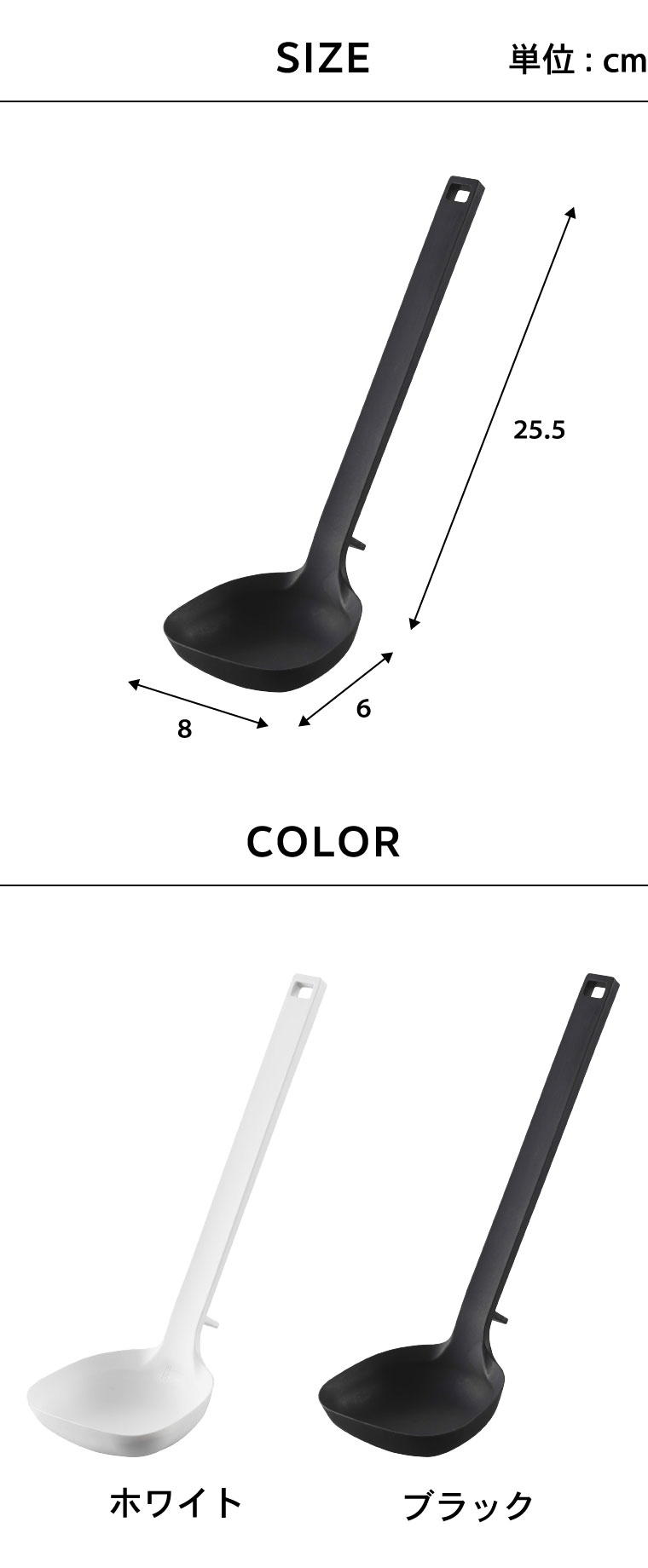 ●商品サイズ:約8X6X25.5cm ●商品重量:60g ●素材・材質: 本体:シリコーン(芯材:ナイロン) ●耐熱:シリコーン部:220℃ ナイロン部:150℃ ●食洗機対応可 ●JANコード:4903208051897 4903208051903