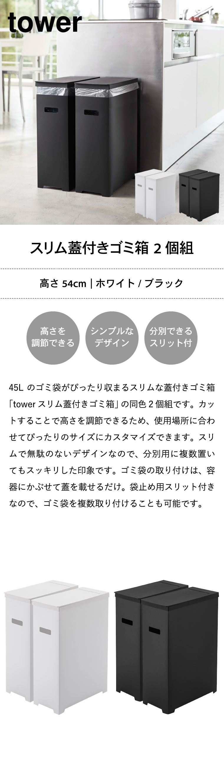 ゴミ箱 スリム蓋付きゴミ箱 2個組 タワー 山崎実業 tower ホワイト/ブラック 5205 5206 タワーシリーズ
