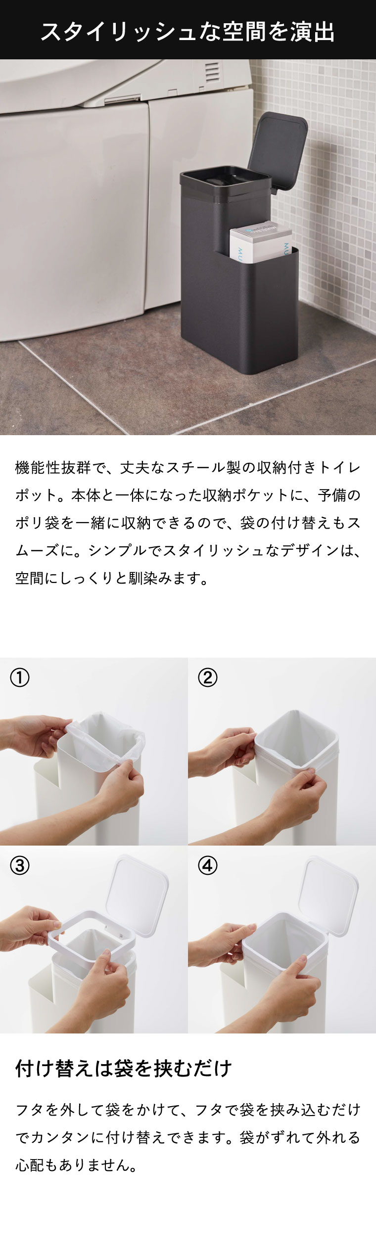 ●素材・材質: 本体:スチール(粉体塗装) 蓋:ABS樹脂