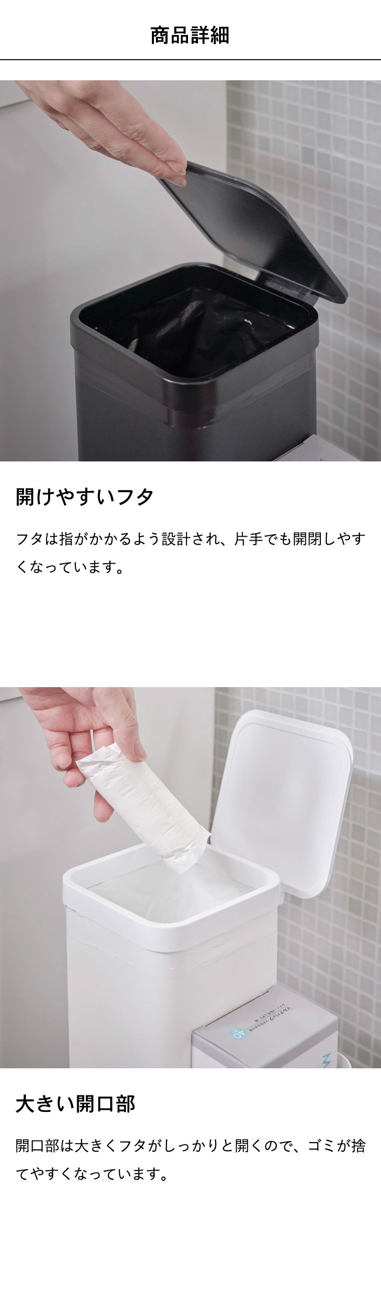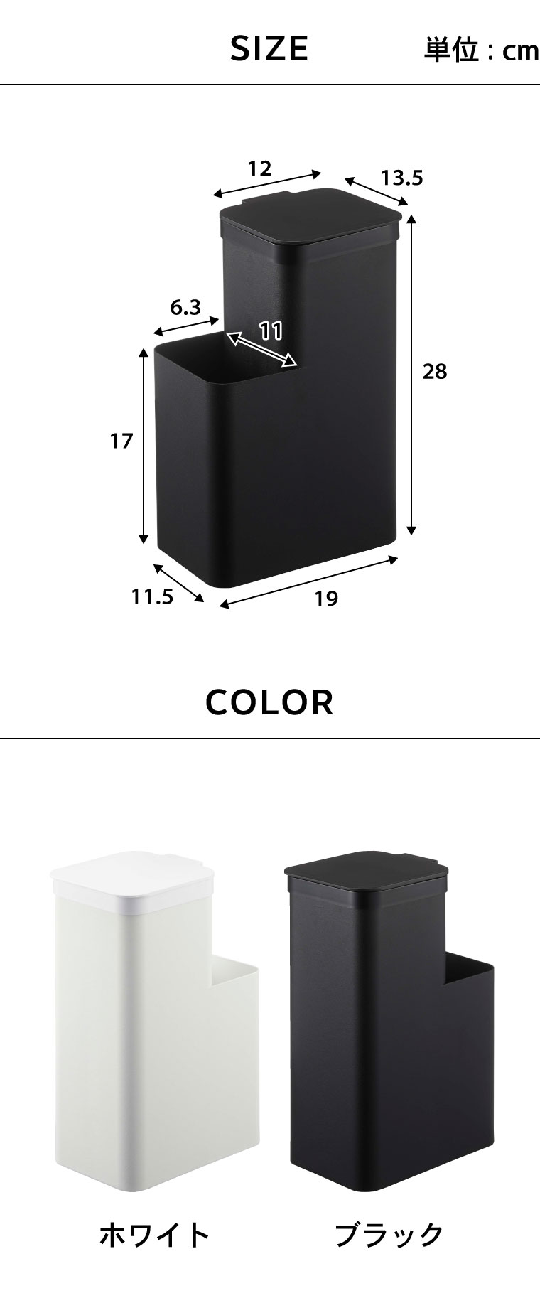 ●商品サイズ:約12X19X28cm ●商品重量:1400g ●素材・材質: 本体:スチール(粉体塗装) 蓋:ABS樹脂 ●対応サイズ:約W30×H35cmのポリ袋(目安) ※ーカーにより表記は異なる場合があります。 ●JANコード:4903208052320 4903208052337