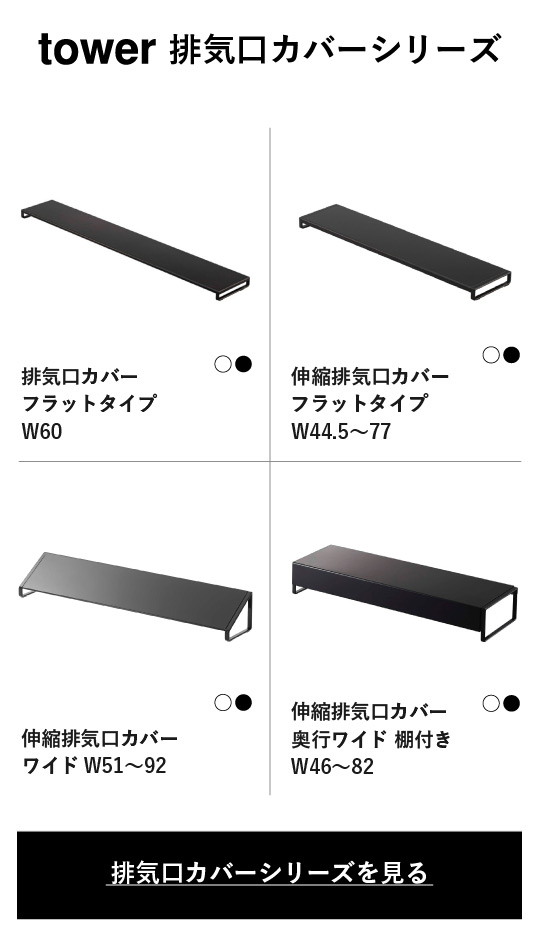 奥行ワイド棚付き伸縮排気口カバー タワー 山崎実業 tower 排気口カバー ホワイト/ブラック 5248 5249 タワーシリーズ