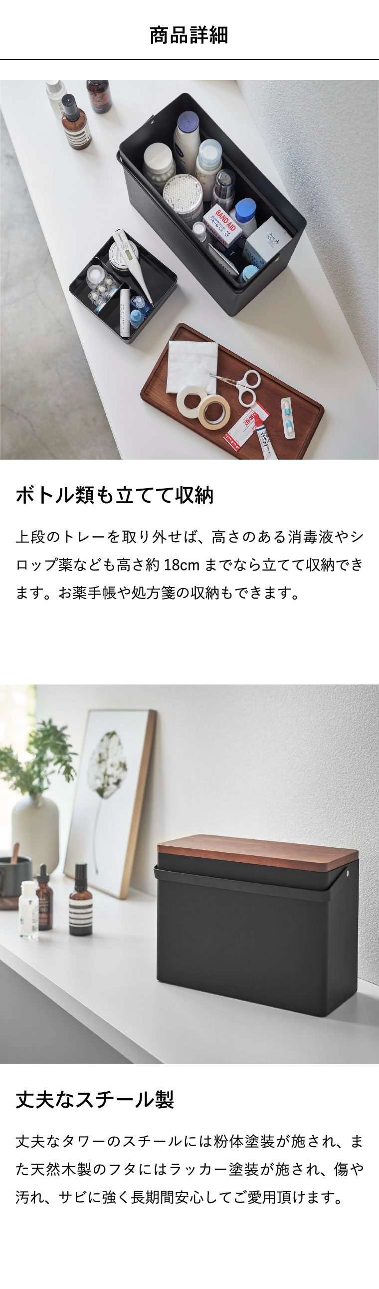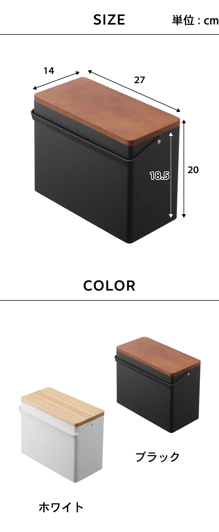 ●素材・材質: 容器:スチール(粉体塗装) 蓋:天然木(ラッカー塗装) トレー:ABS樹脂