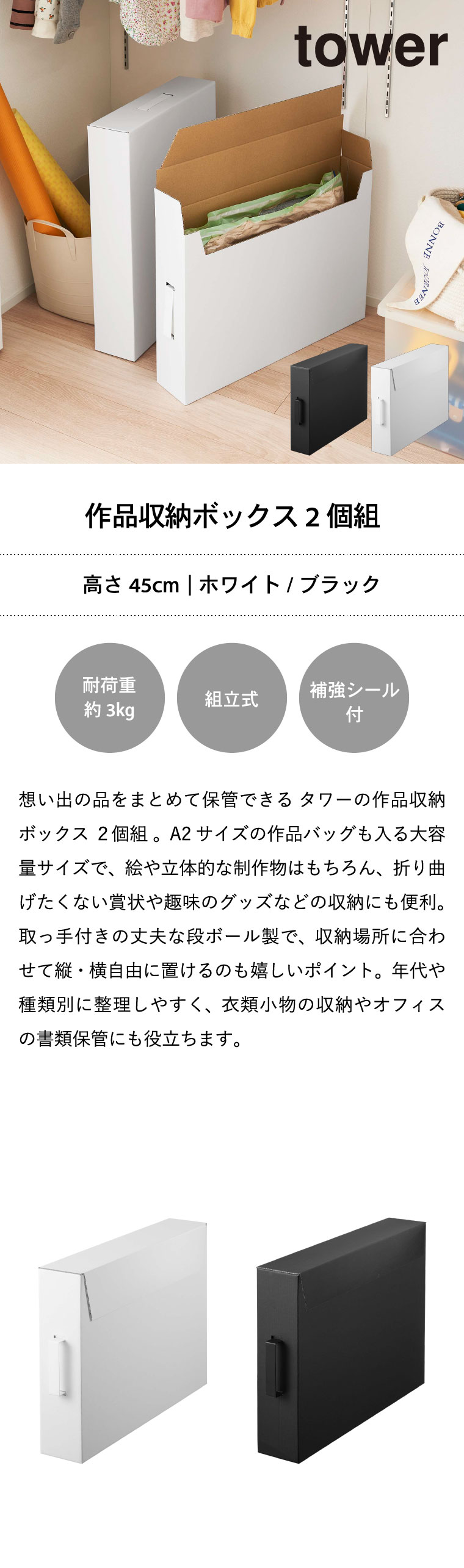 作品収納ボックス 2個組 タワー 山崎実業 tower ホワイト/ブラック 5310 5311 タワーシリーズ
