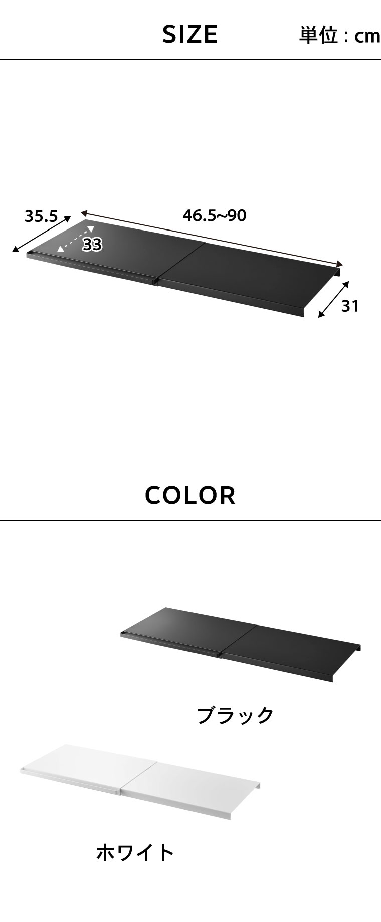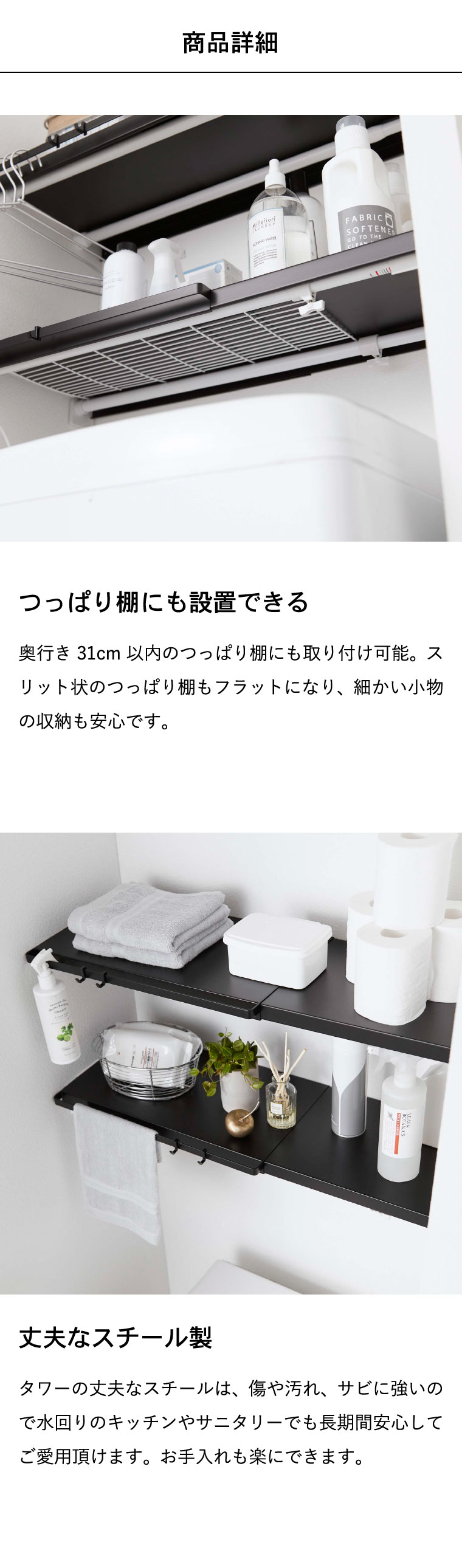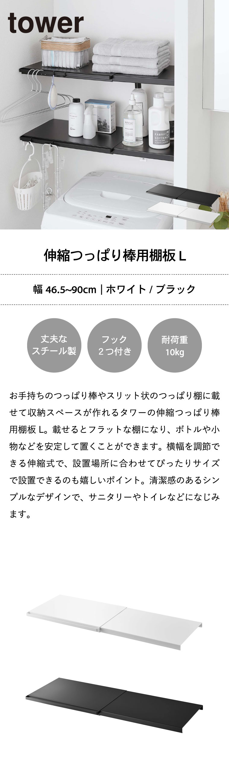 伸縮 つっぱり棒用棚板 L タワー 山崎実業 tower ホワイト/ブラック 5322 5323 タワーシリーズ