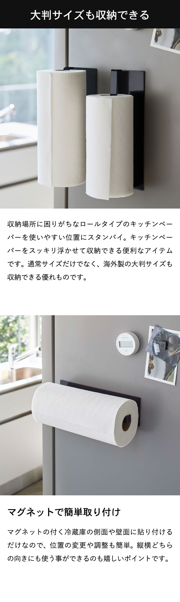 ●対応サイズ:直径:約15cm以内・高さ:約28cm以内・芯の直径:約3.6cm以上のキッチンペーパーロールに対応。