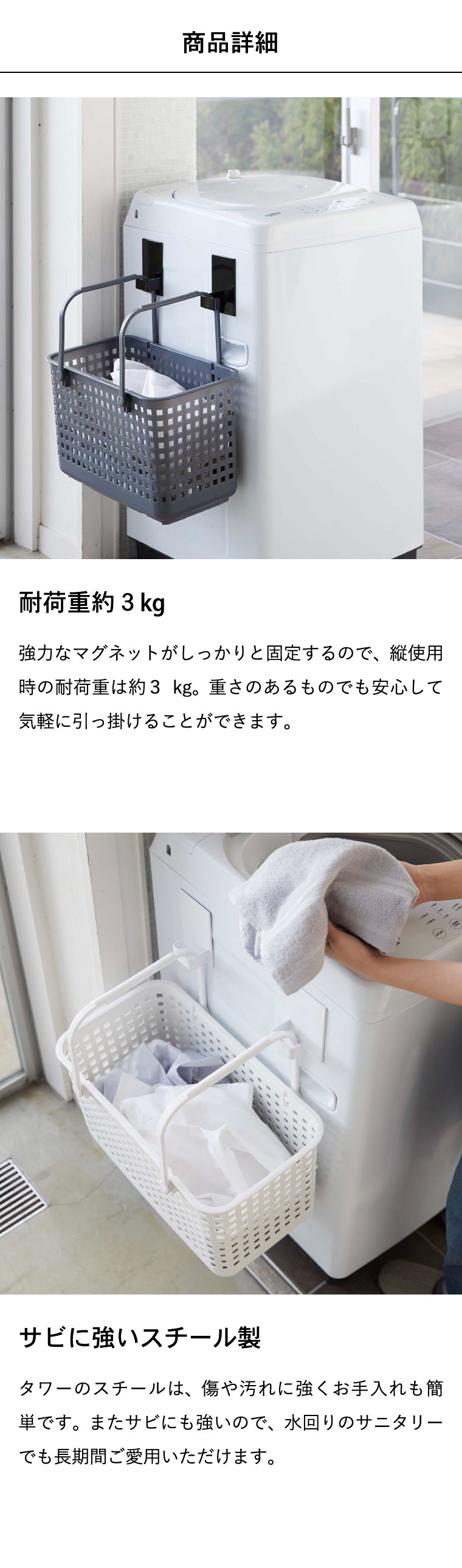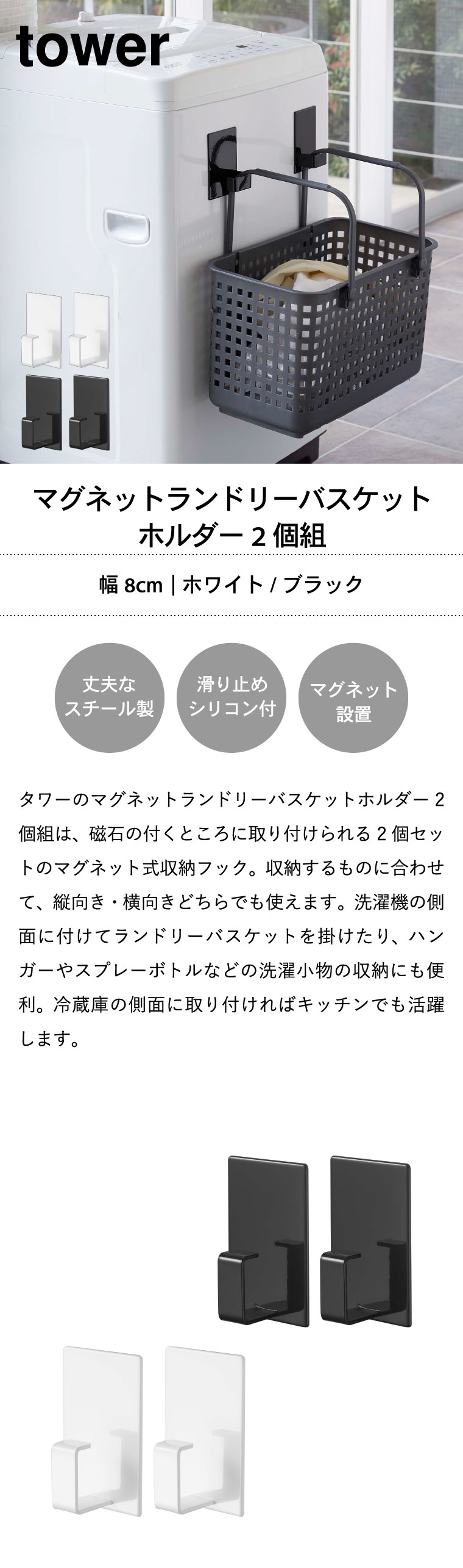 マグネットランドリーバスケットホルダー 2個組 タワー 山崎実業 tower マグネット 洗濯機 ホワイト/ブラック 5419 5420 towerシリーズ