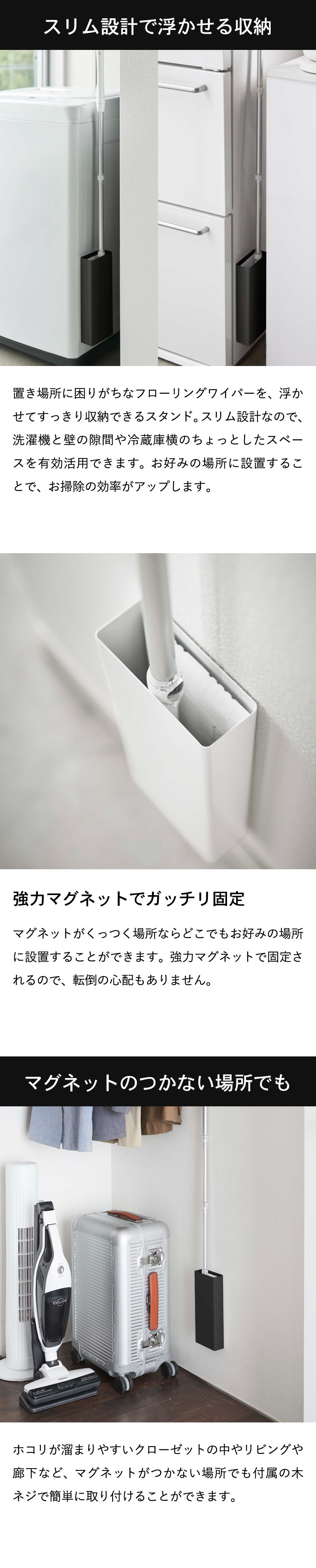 フローリング ワイパー カーぺット ハンディー スティック スタンド 浮かせる マグネット 掃除用品 収納用品 etc