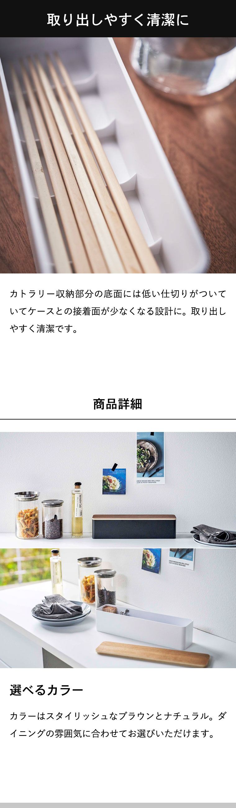 蓋付きカトラリーケース ロング リン 山崎実業 RIN ブラウン/ナチュラル 5405 5406 タワーシリーズ