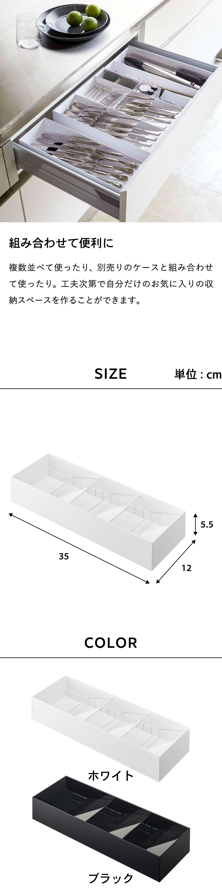 ●商品サイズ:約35X12X5.5cm ●商品重量:約370g ●内寸サイズ: 約W34.5×D11×H5.2cm ●素材・材質: ケース:ABS樹脂 仕切り:PS樹脂 滑り止め:シリコーン ●耐熱:90℃ ●耐冷:-40℃ ●JANコード:4903208054133 4903208054140