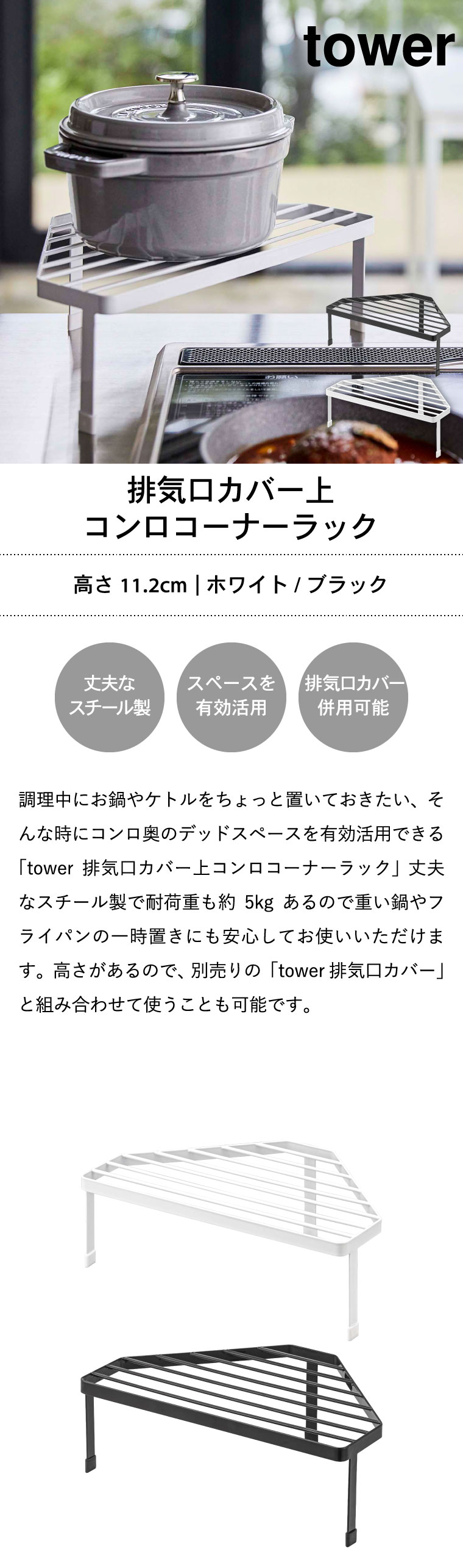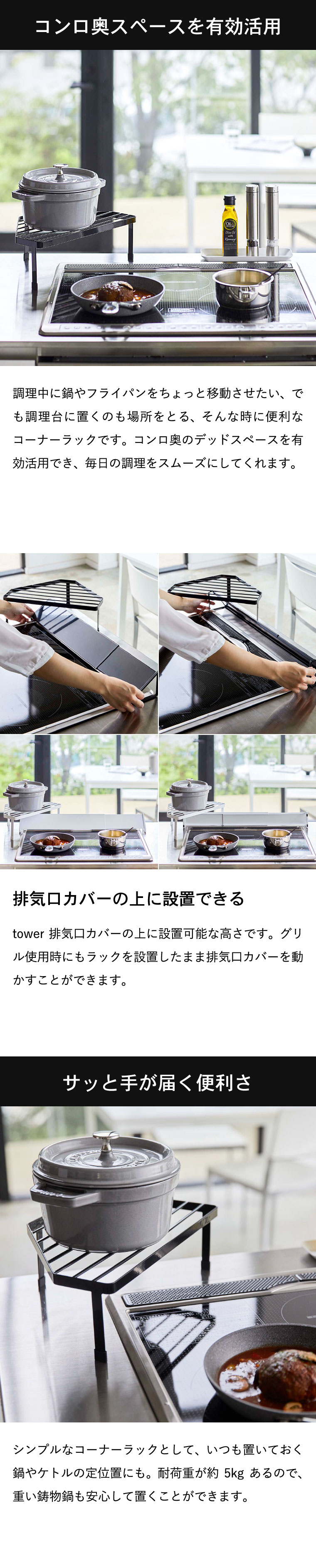 排気口カバー上コンロコーナーラック タワー