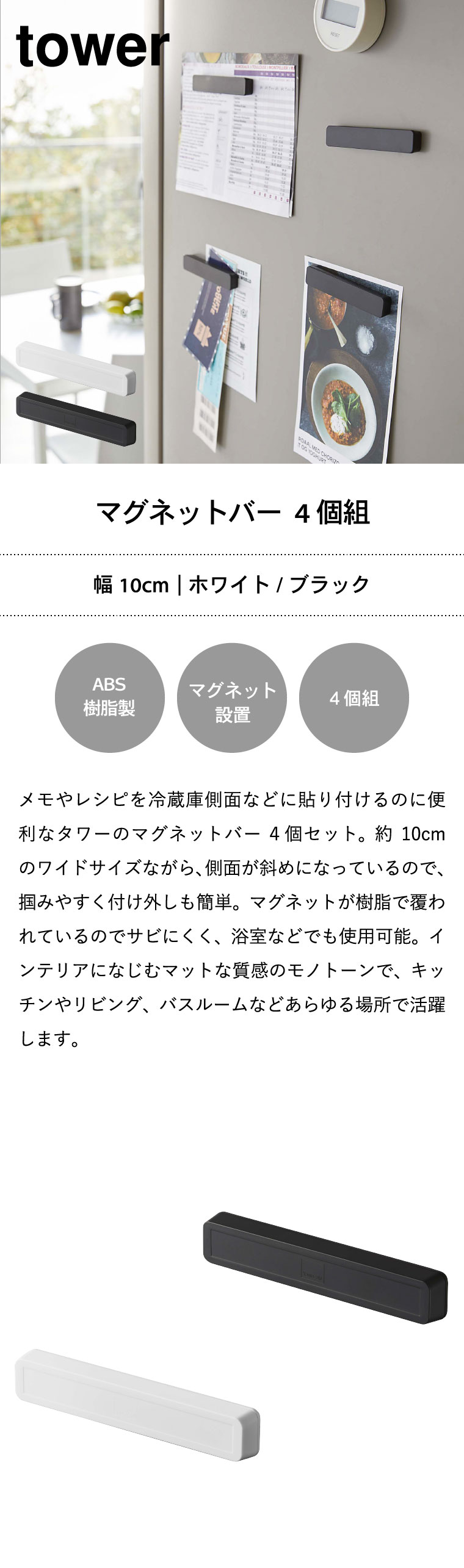マグネットバー 4個組 タワー 山崎実業 tower ホワイト/ブラック 5407 5408 タワーシリーズ