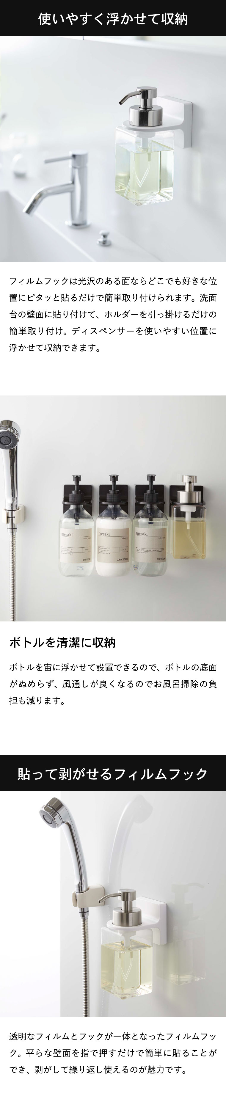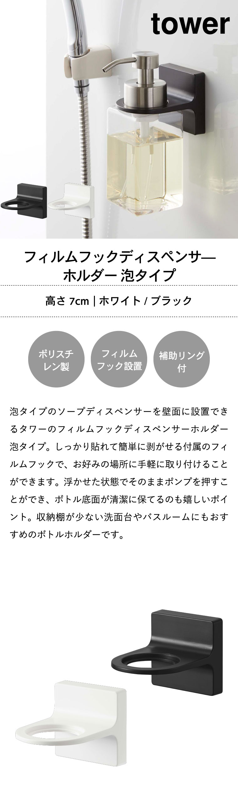 フィルムフックディスペンサーホルダー 泡タイプ タワー 山崎実業 tower ホワイト/ブラック 5347 5348 タワーシリーズ