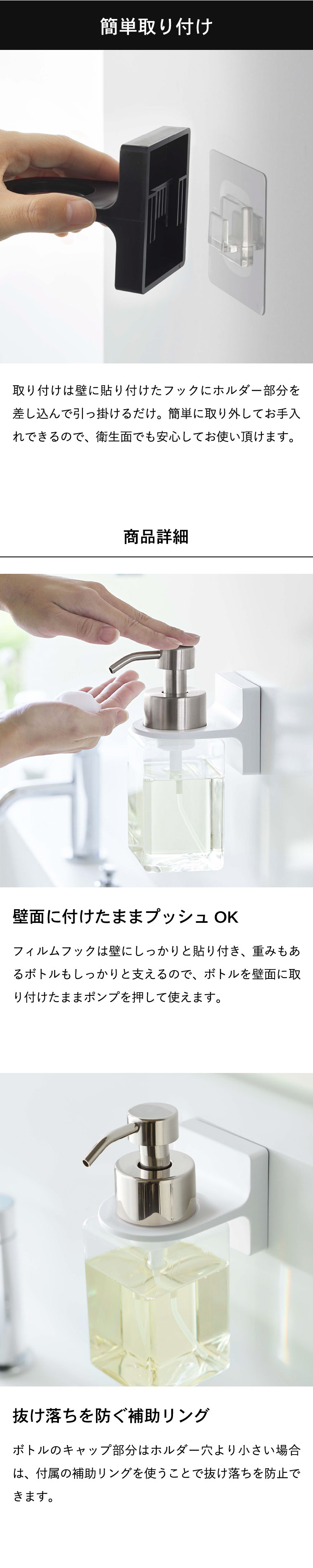 ●対応サイズ:ディスペンサーのねじ込み部分:約3.9cm~約4.5cm以内 容器のサイズ:直径約9cm以内 ■ホルダー穴 直径約4.5cm