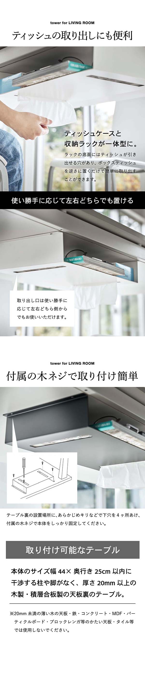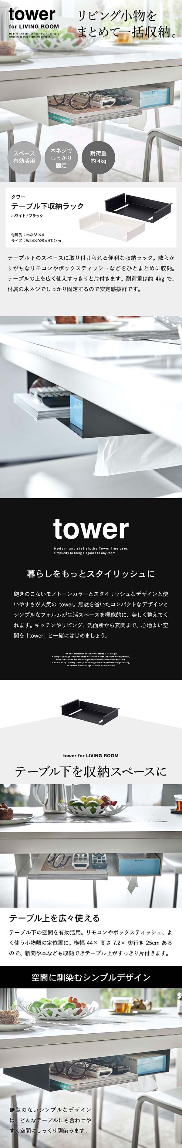 テーブル下収納ラック タワー 山崎実業 tower ホワイト/ブラック 5481 5482 タワーシリーズ