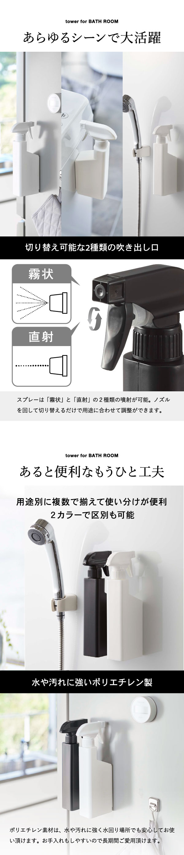 ●商品サイズ:約4.5X10.5X23cm ●商品重量:約105g ●素材・材質: 本体:ポリエチレン マグネット 滑り止め:シリコーン スプレー:ポリプロピレン パイプ:ポリエチレン ●耐荷重:約500g ●耐熱:100℃ ●耐冷:-40℃ ●内容量:約400mL ●JANコード:4903208053808 4903208053815