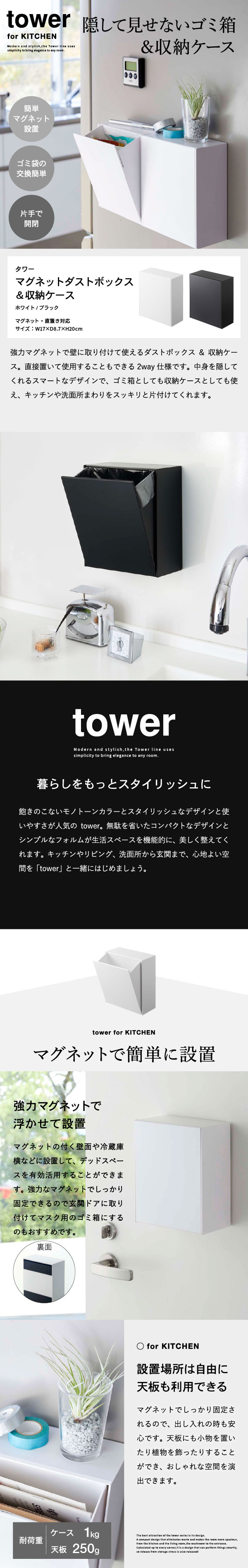 マグネットダストボックス&収納ケース タワー 山崎実業 tower ホワイト/ブラック 5431 5432 タワーシリーズ マグネット