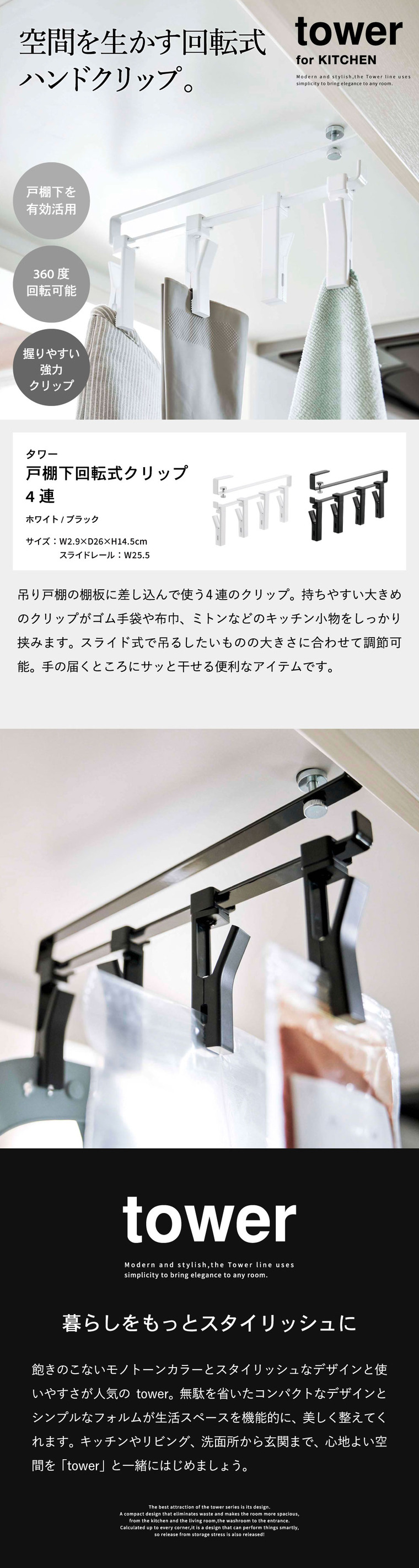 | ≫/ 【3】TOWER 戸棚下回転式クリップ 4連 |