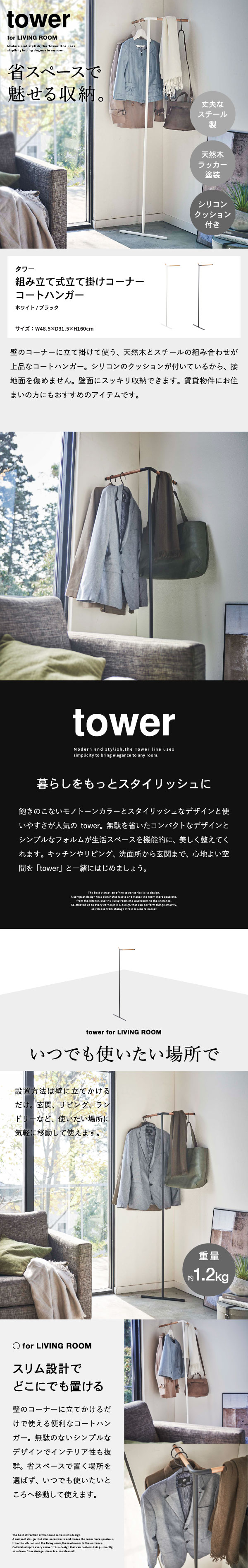 立て掛けコーナーコートハンガー タワー