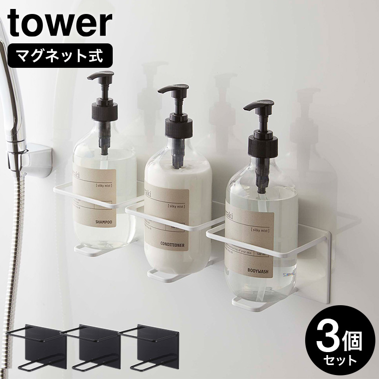 マグネットバスルームチューブ&ボトルホルダー タワー L 3個セット 山崎実業 tower ホワイト/ブラック 5508 5509 タワーシリーズ マグネット