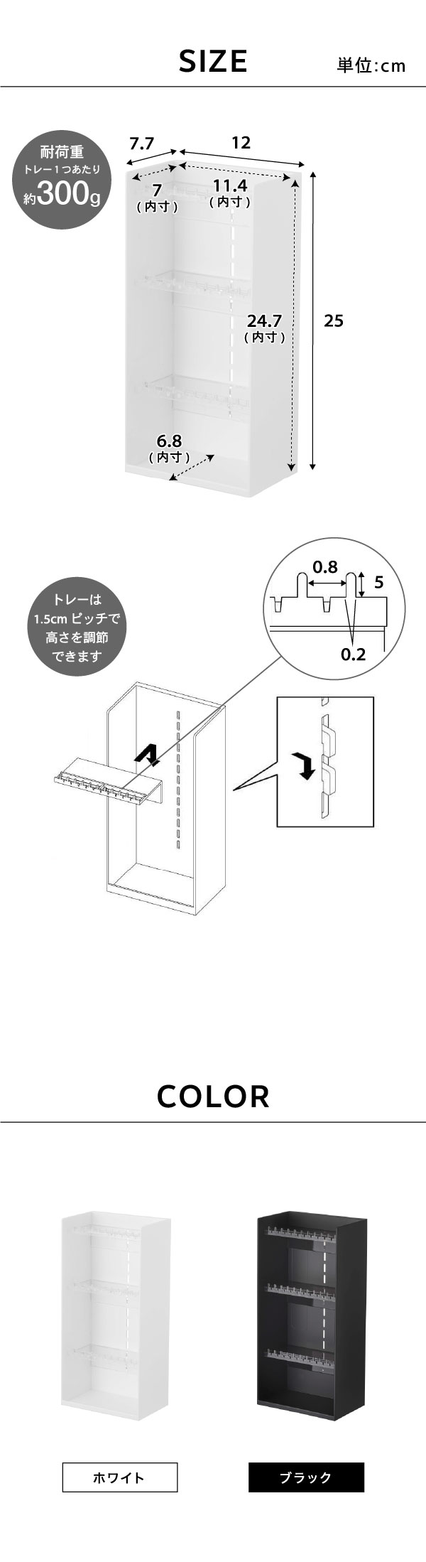 ●耐荷重:トレー1つあたり:約300g