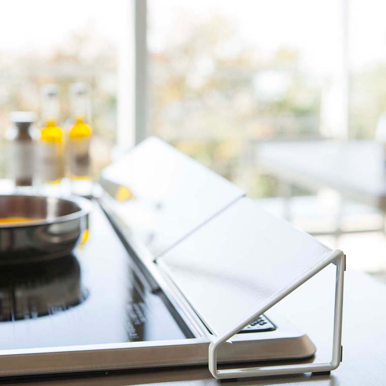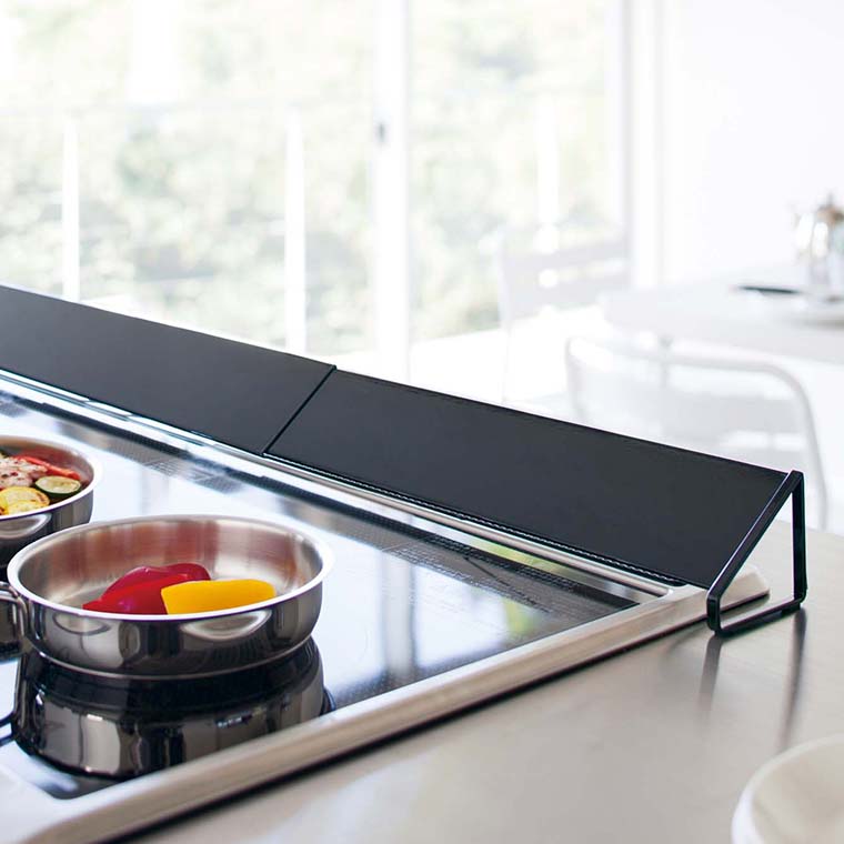 3連横並びのコンロに対応!排気口に置くだけで飛び散る油や調理汚れをしっかりガードします。汚れが拭き取りやすい艶やかな表面仕上げです。魚焼きグリルで調理する際は製品を倒して排気口上部を空けてください。