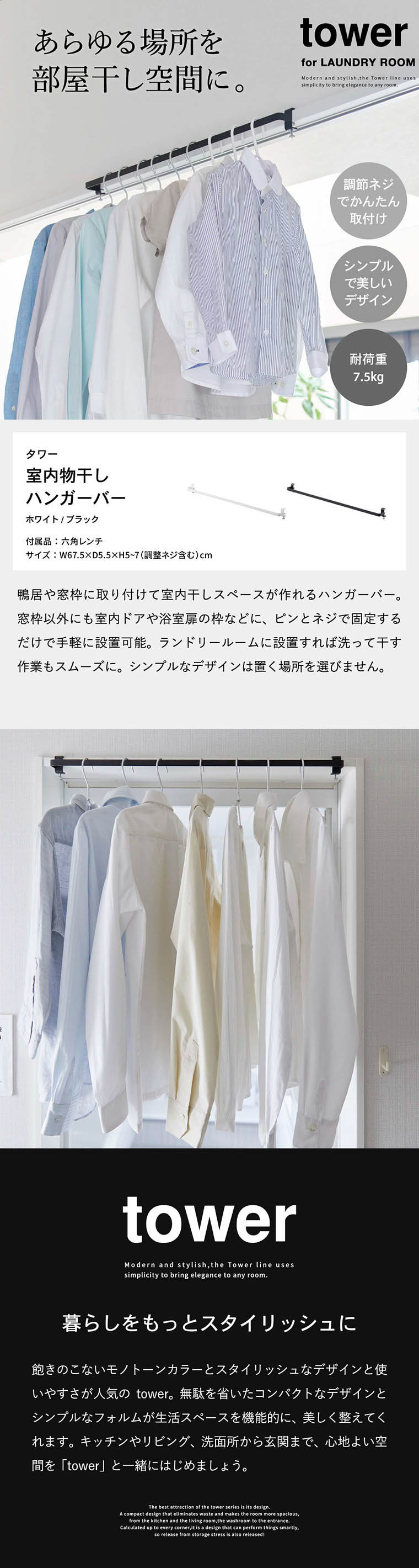室内物干しハンガーバー タワー