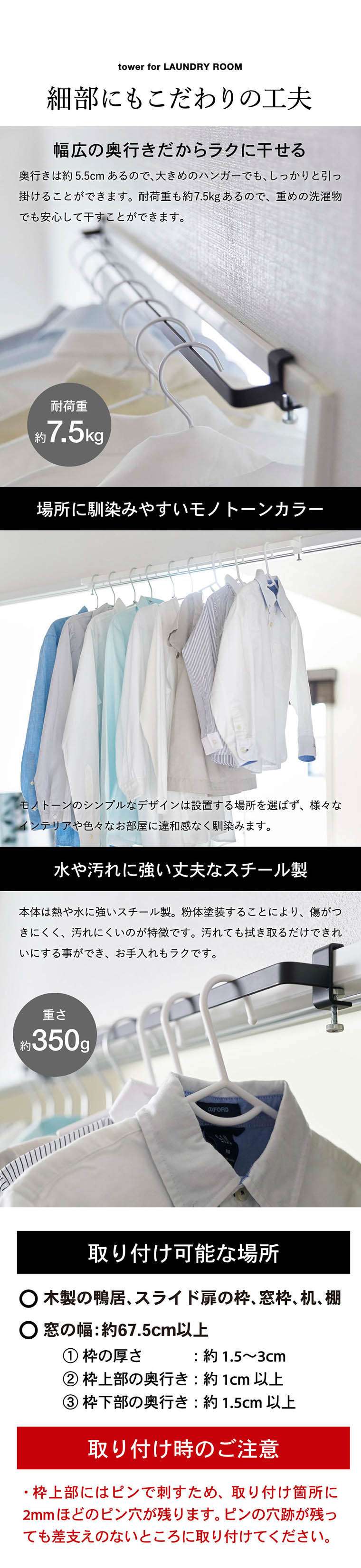 ●対応サイズ:取り付け可能な枠の幅 木製の鴨居・スライド扉枠・窓枠・机・棚