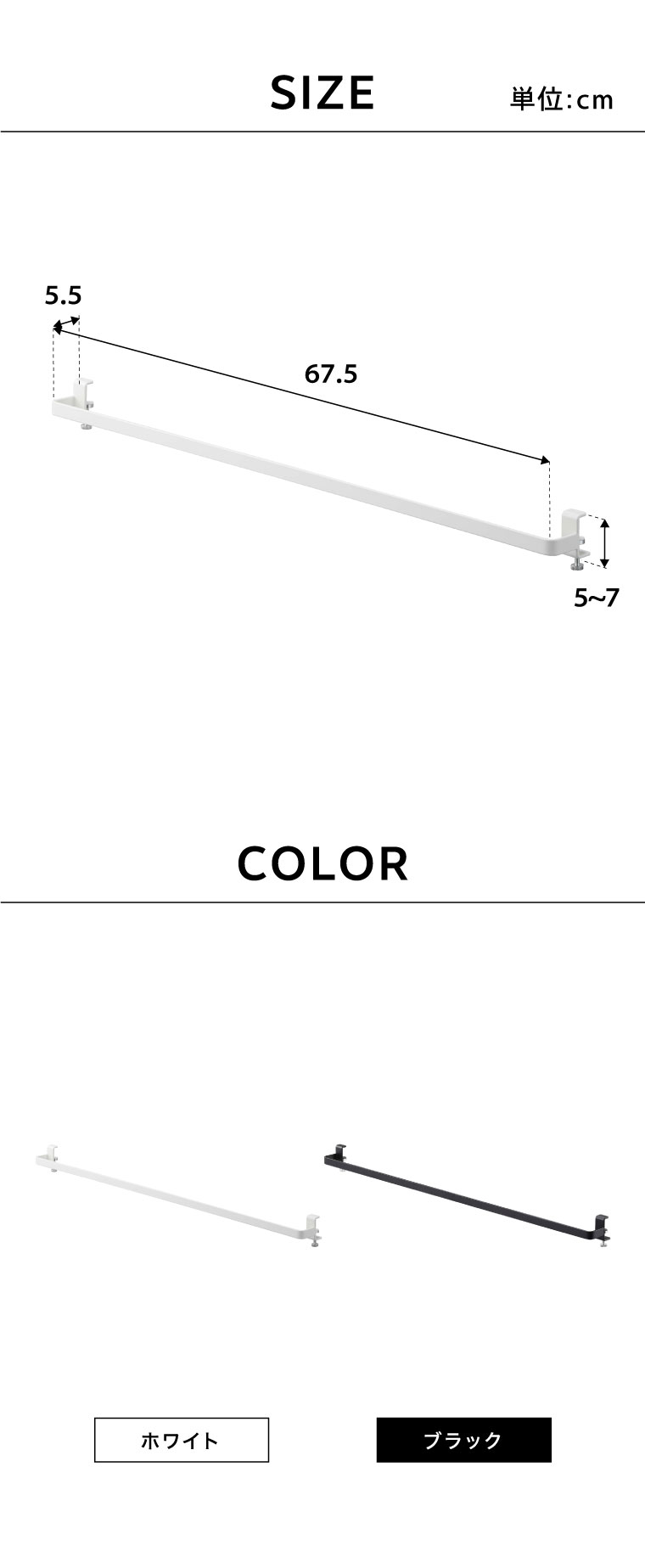 ●商品サイズ:約67.5X5.5X5~7(調整ネジ含む)cm