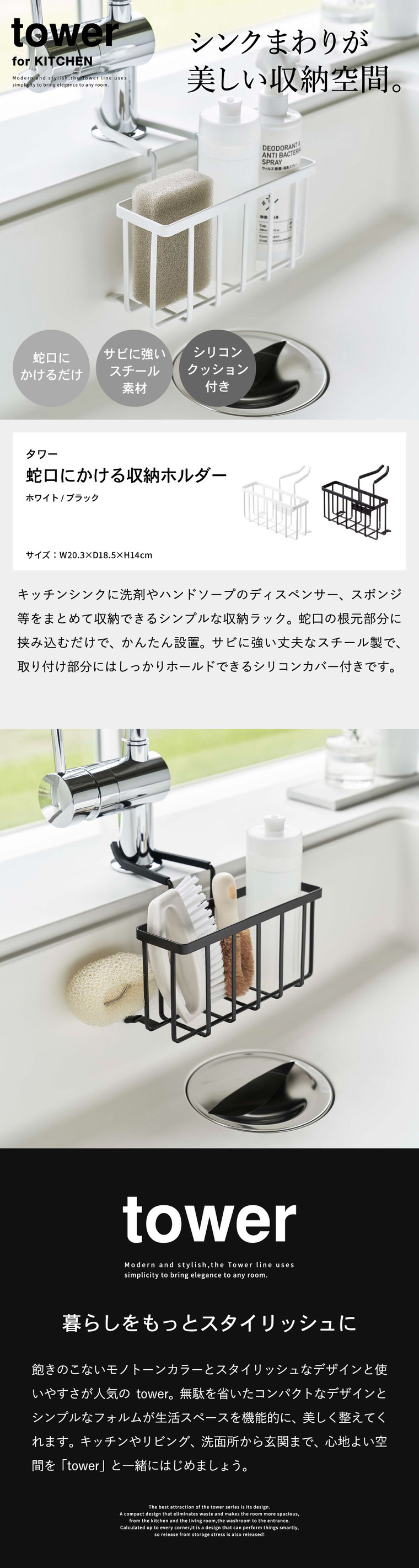 山崎実業 タワーシリーズ tower トスカ tosca リン RIN キッチン シンクまわり 収納用品