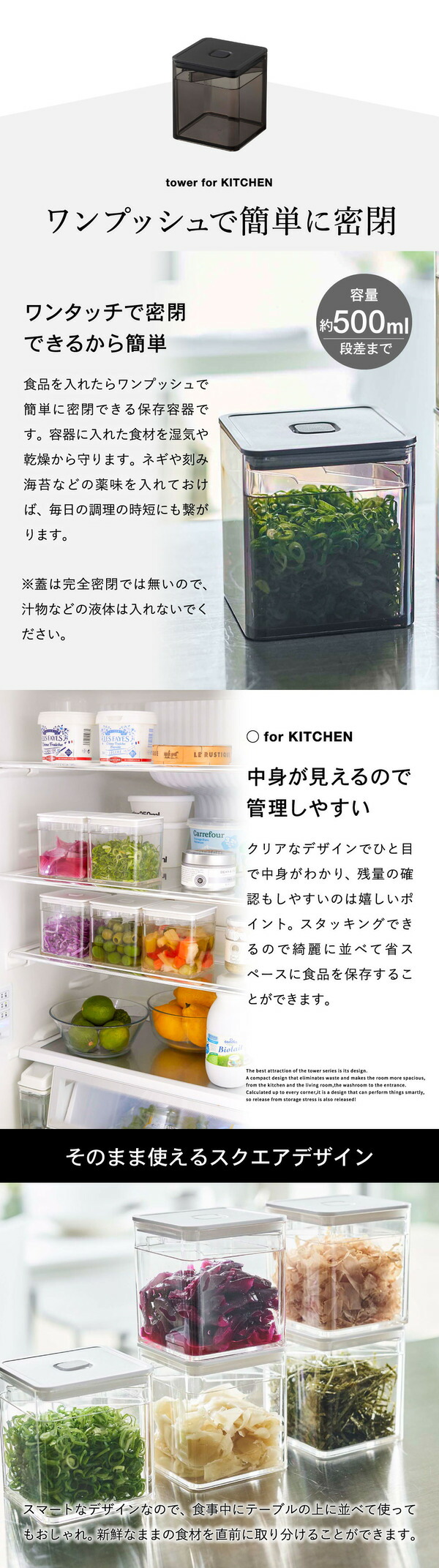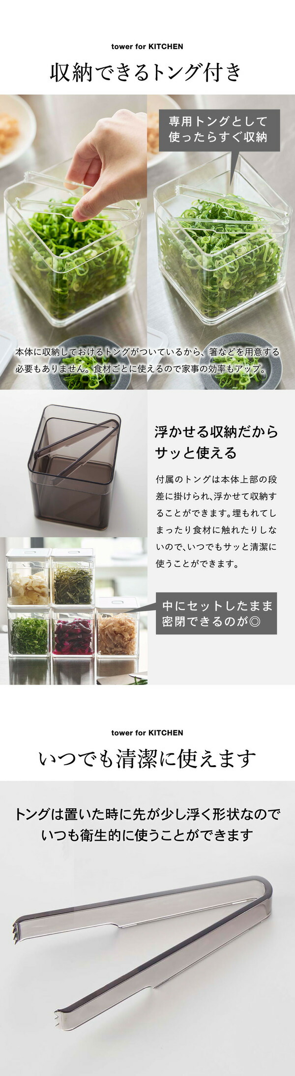トング付き バルブ付き密閉保存容器 タワー 2個セット