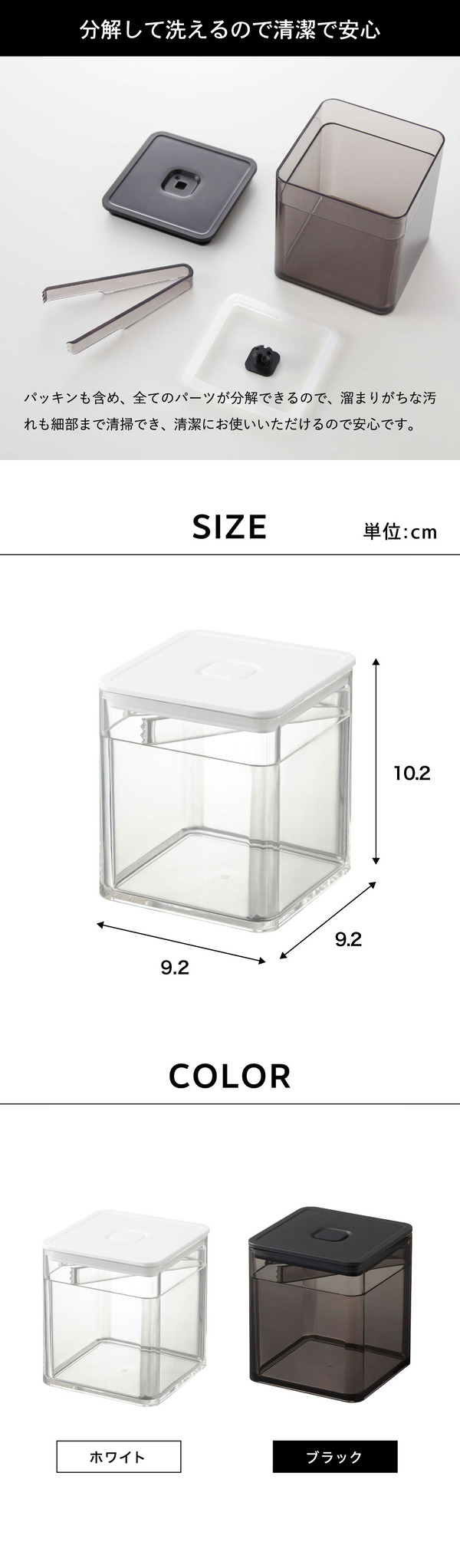 ●素材・材質: 容器:ポリスチレン トング:PET-G樹脂 蓋:ポリプロピレン パッキン・バルブ:シリコーン