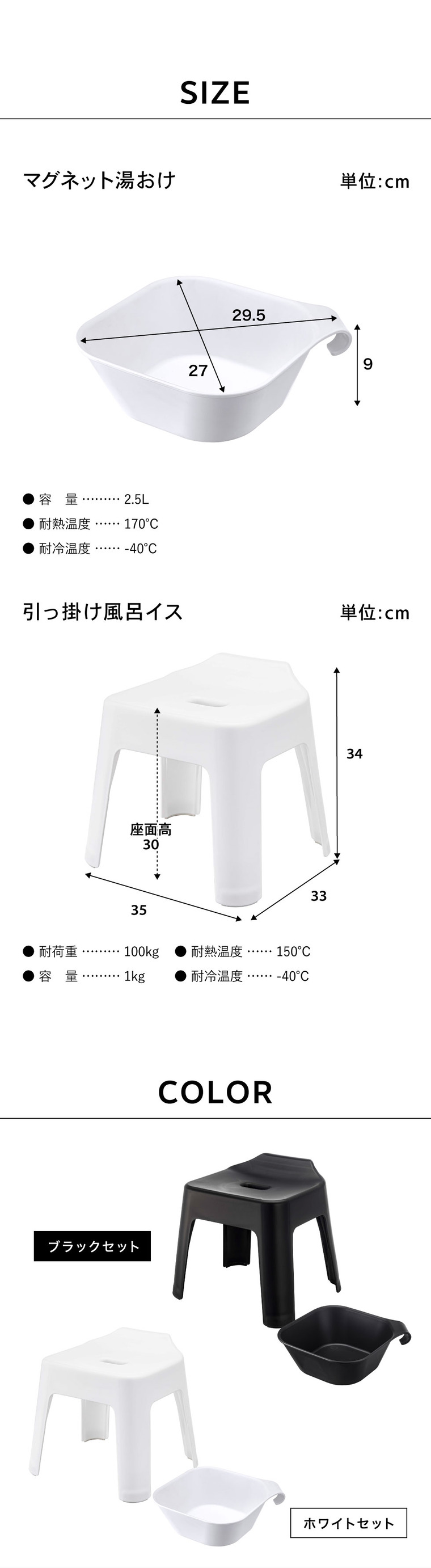 風呂椅子&風呂桶 セット(引っ掛け風呂イス SH30 + マグネット&引っ掛け湯おけ) タワー 山崎実業 tower ホワイト/ブラック 5526 5527 5378 5379 タワーシリーズ