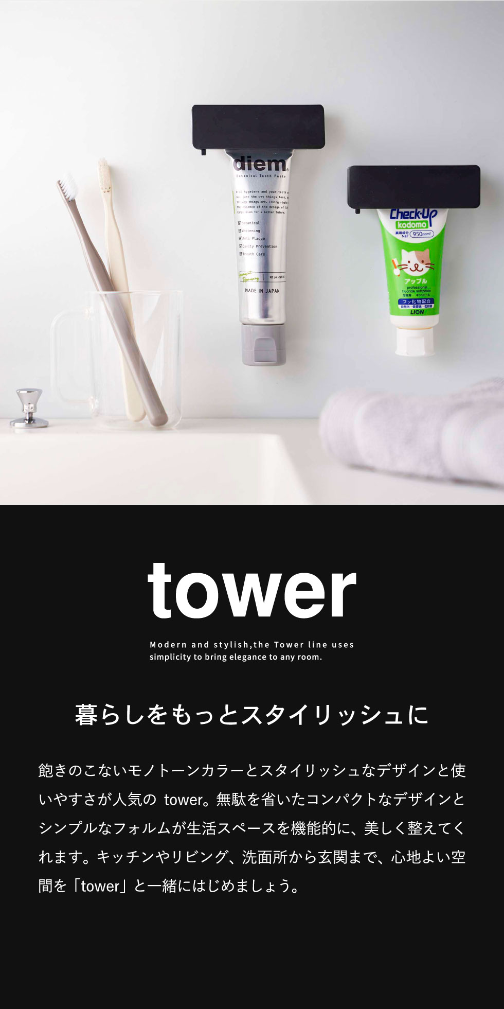 ≫/ 【3】TOWER フィルムフック 歯磨き粉チューブホルダー 2個セット