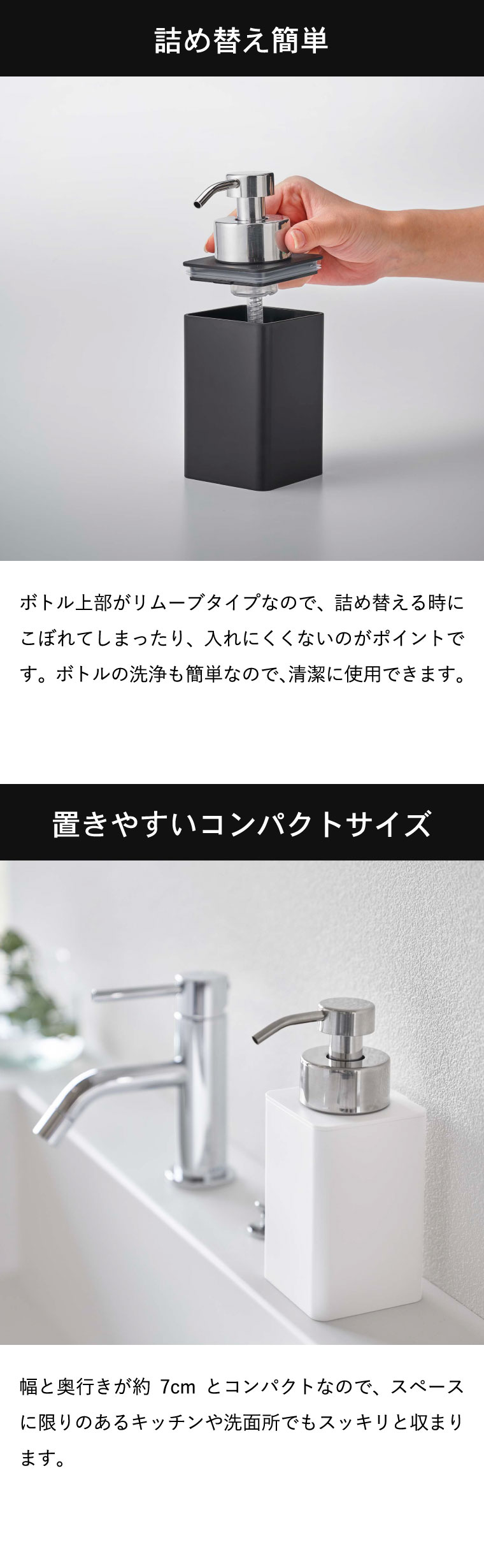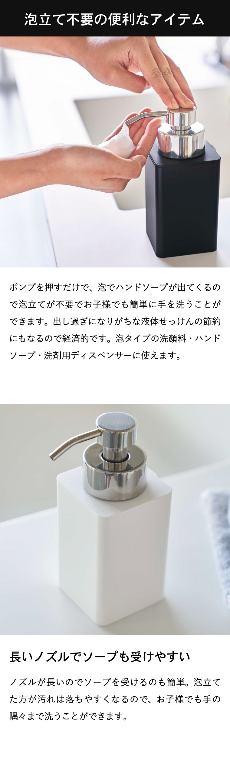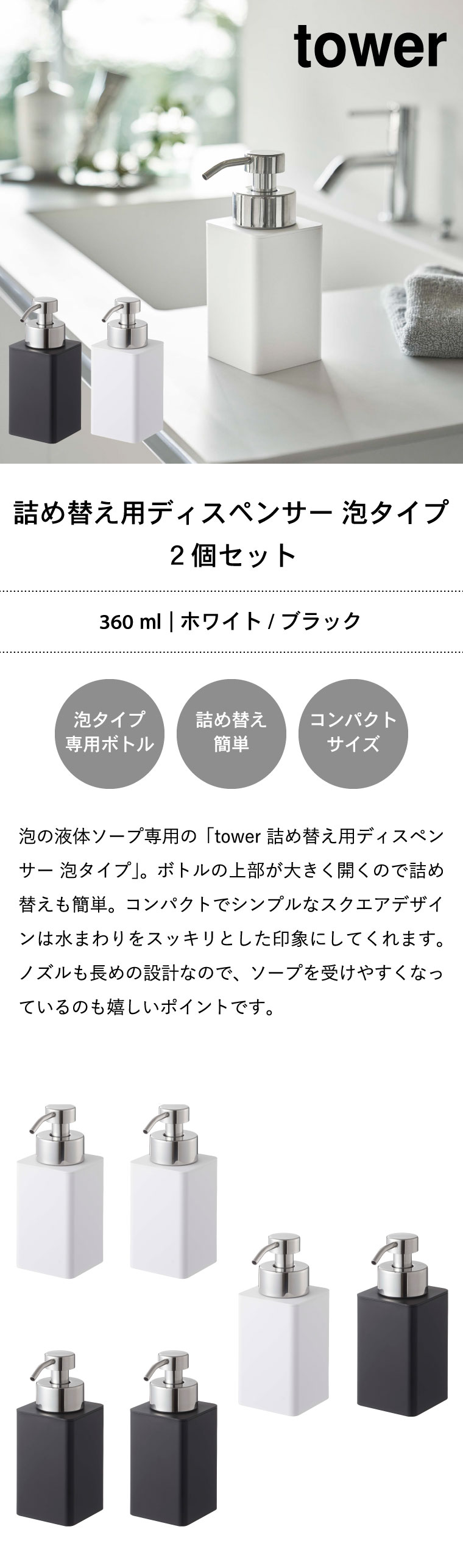 ディスペンサー 詰め替え用ディスペンサー 泡タイプ タワー 2個セット 山崎実業 tower ホワイト/ブラック 5207 5208 タワーシリーズ