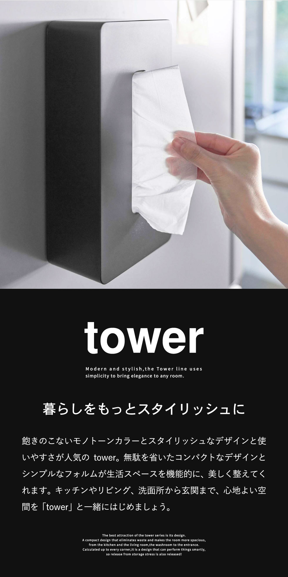マグネット ティッシュケース レギュラーサイズ タワー 2個セット 山崎実業 tower ホワイト/ブラック 5585 5416 タワーシリーズ マグネット
