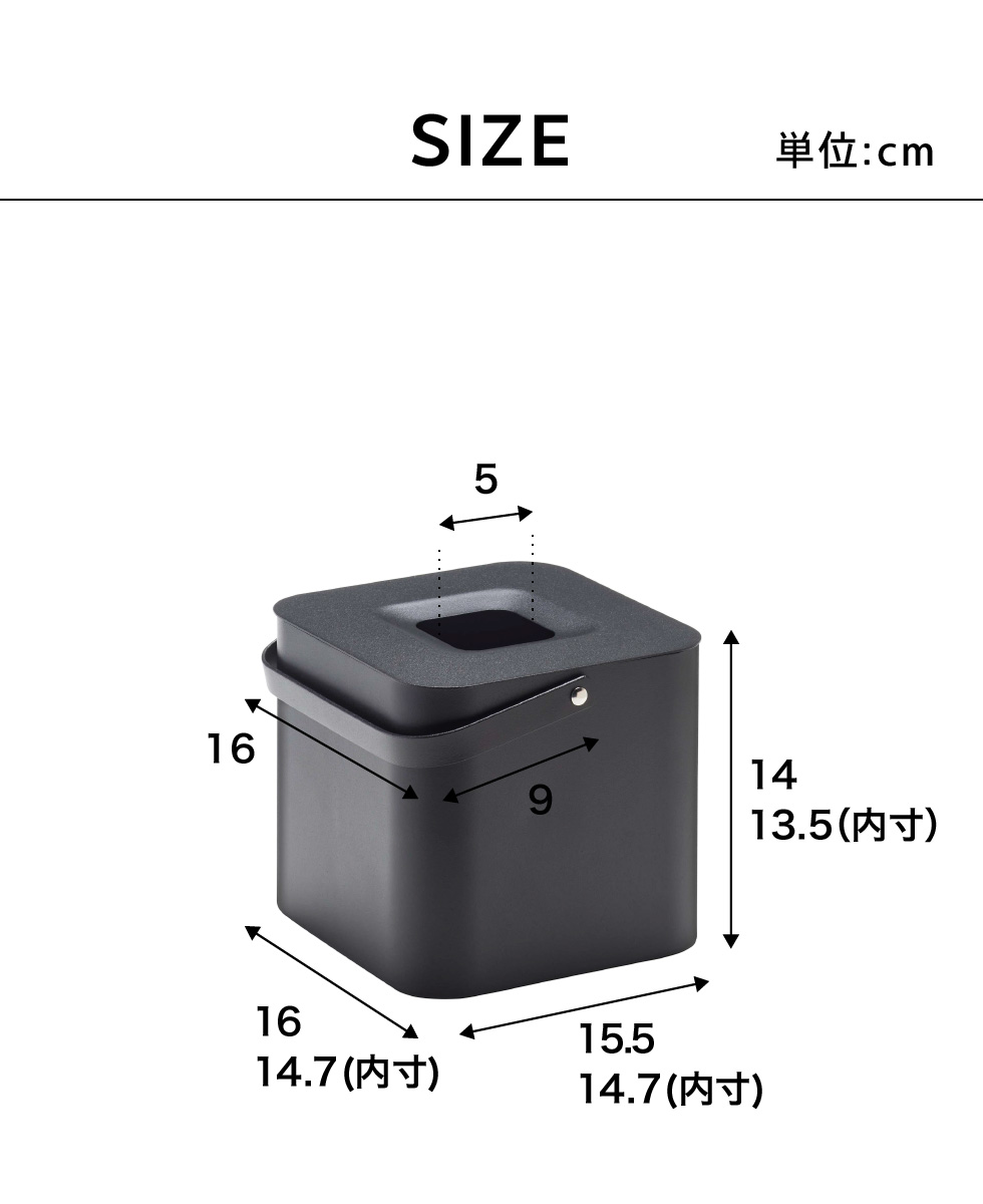 ●内寸サイズ: 本体収納部:約W14.7×D14.7×H13.5cm 蓋開口部:約W5×D5cm