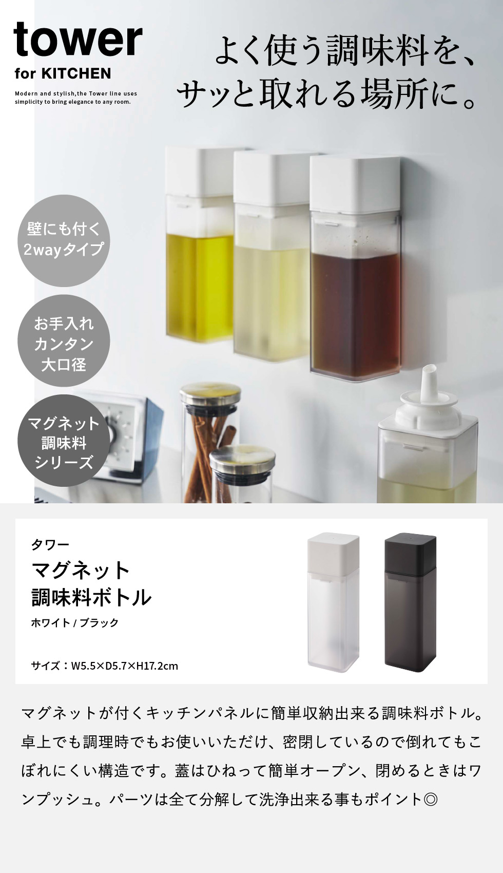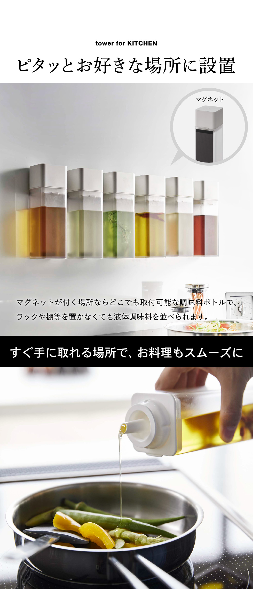 マグネット調味料ボトル タワー 山崎実業 tower ホワイト/ブラック 5718 5719 マグネット