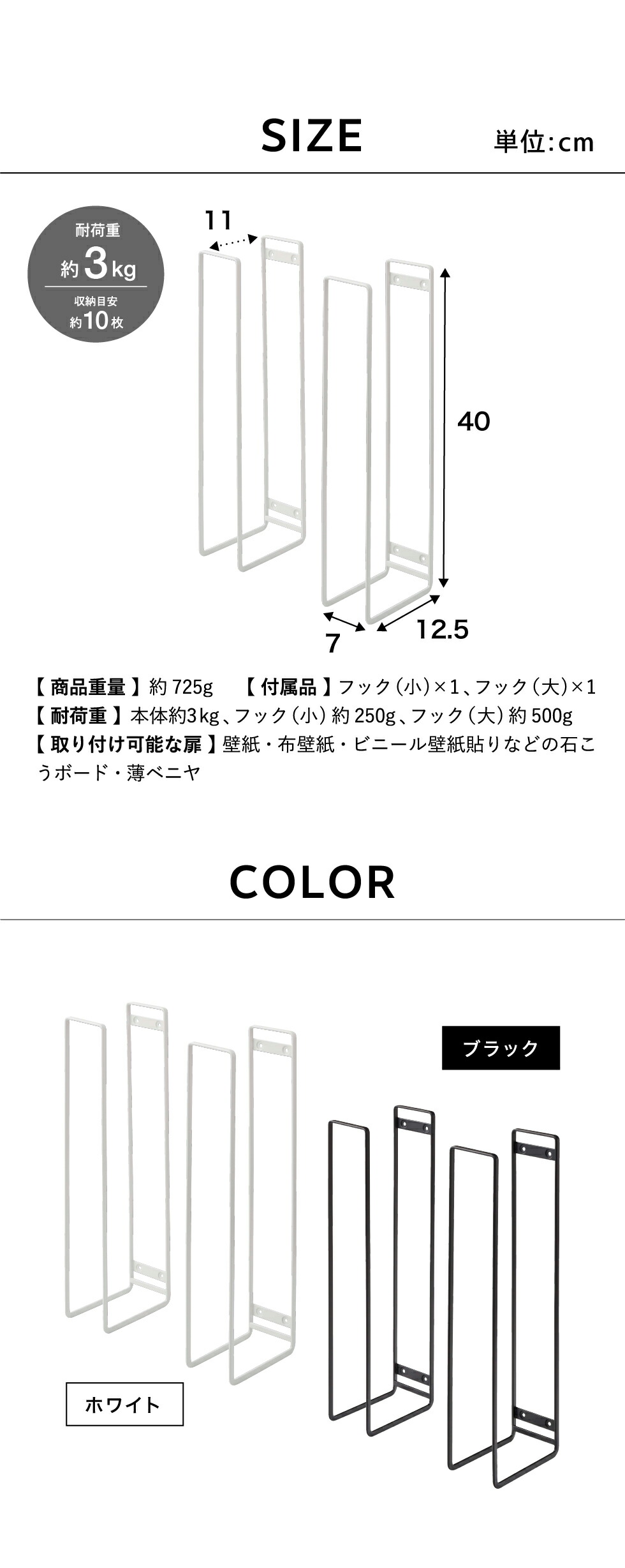 ●内寸サイズ: 奥行約11cm※収納目安:約10枚 フック(小):約1cm フック(大):約11cm
