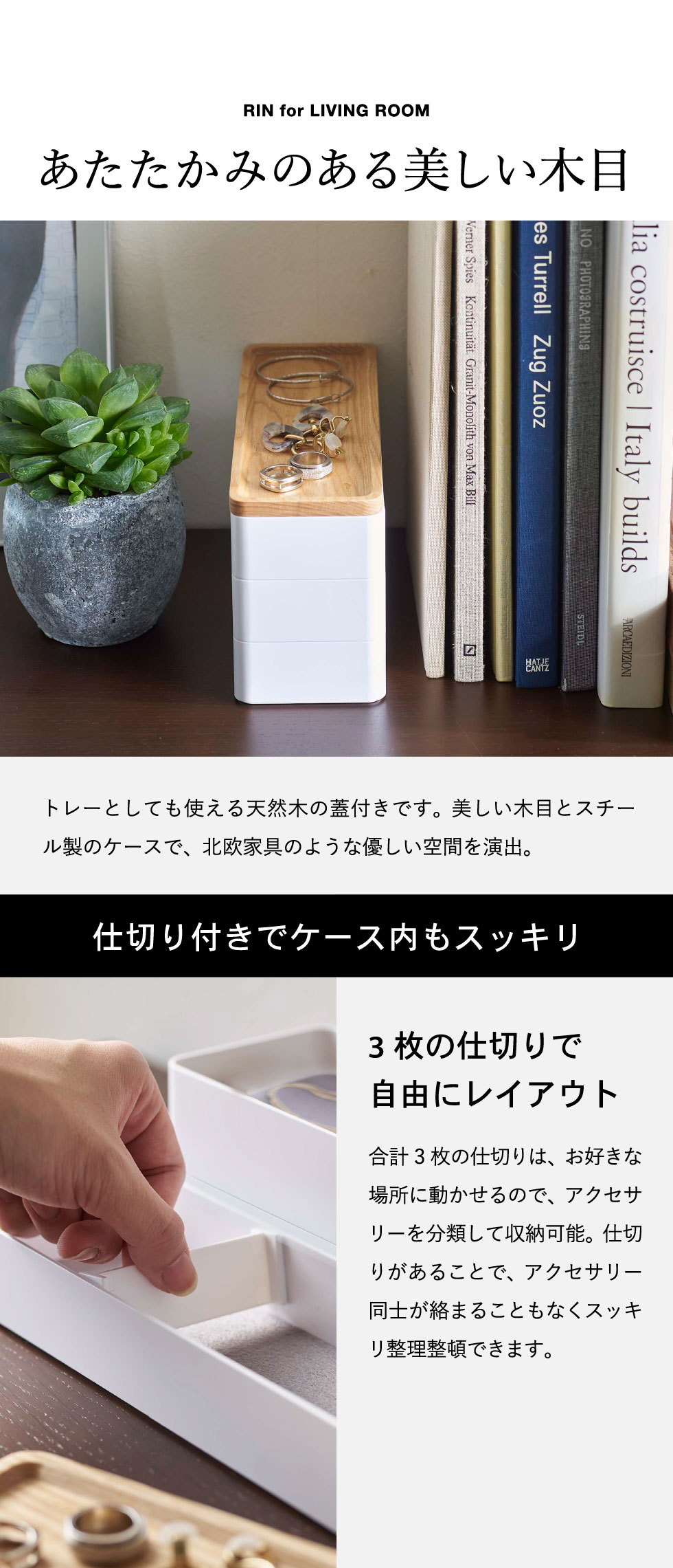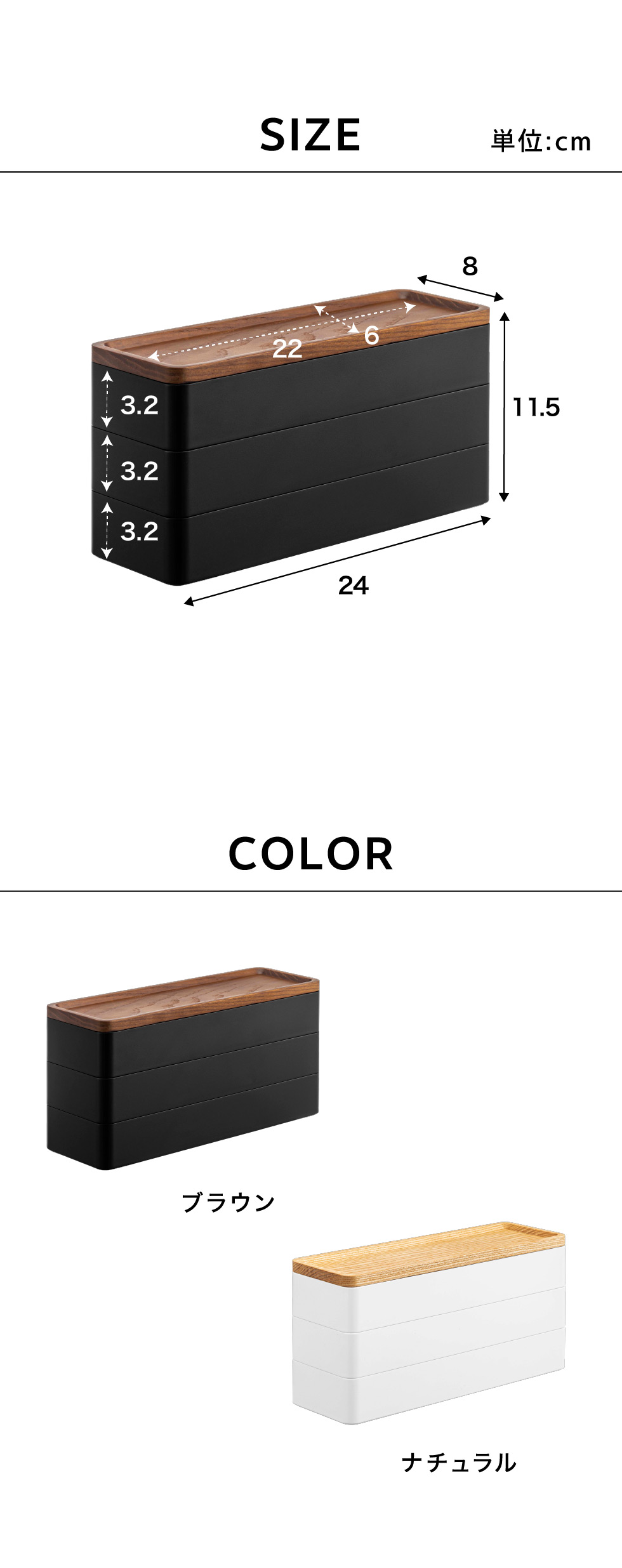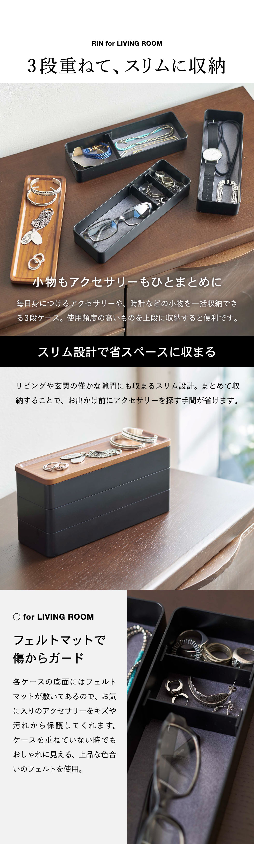 トレー付きスリムアクセサリーケース 3段 リン
