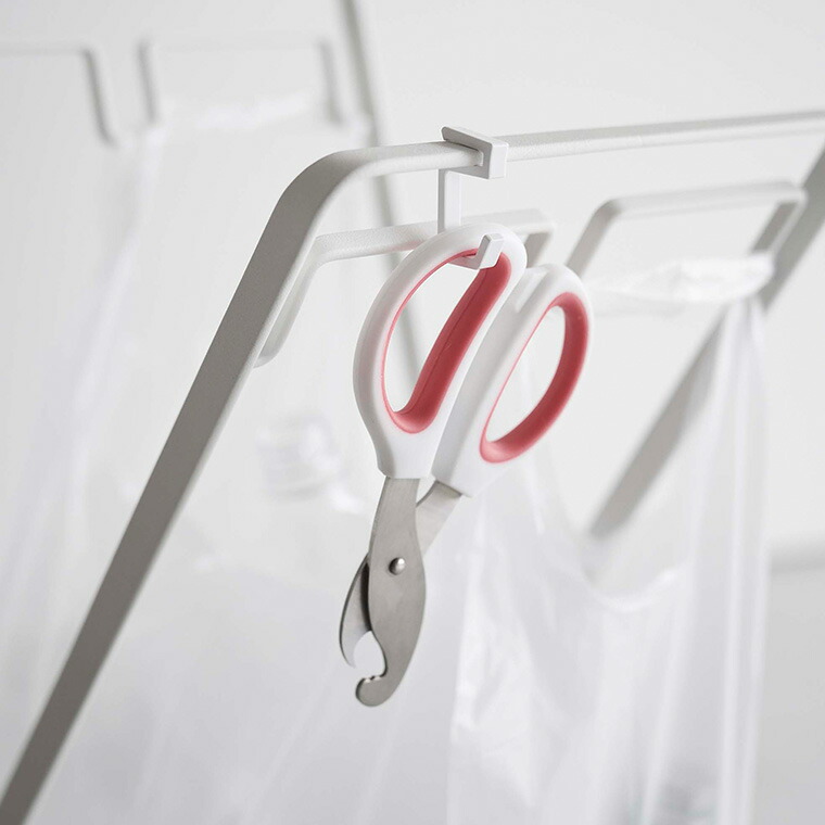 30L・45Lのゴミ袋、レジ袋をそのまま掛けられ、分別も可能な開閉式のゴミ袋スタンド!レジ袋を引っ掛けるだけで野菜クズや食品トレーなどの資源ゴミを、手軽に捨てることができます。空き缶やペットボトルの分別も可能。30 Lゴミ袋 レジ袋×2 大きめサイズのゴミ袋スタンドとしても。付属のフックに分別バサミ等の小物を掛けられます。付属のフックで袋のズレを防ぎます。