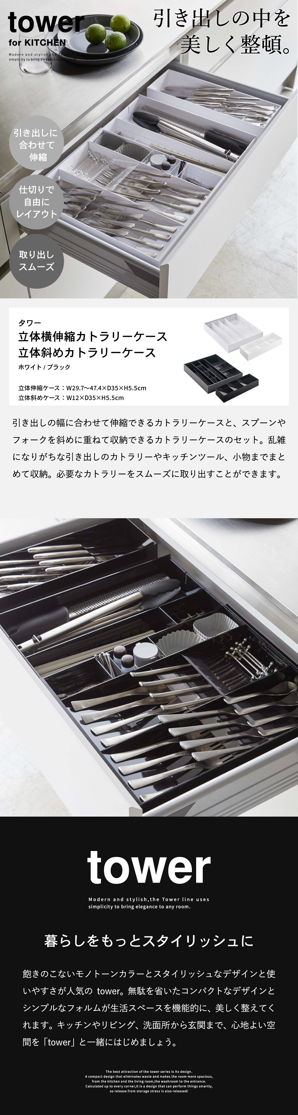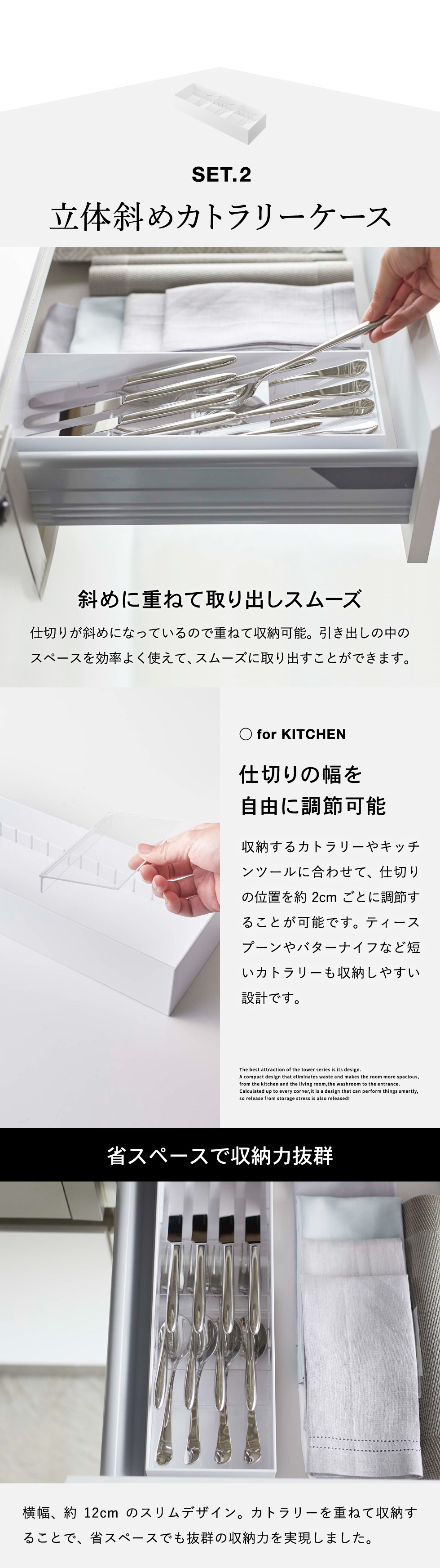 立体斜めカトラリーケース & 立体横伸縮カトラリーケース セット タワー