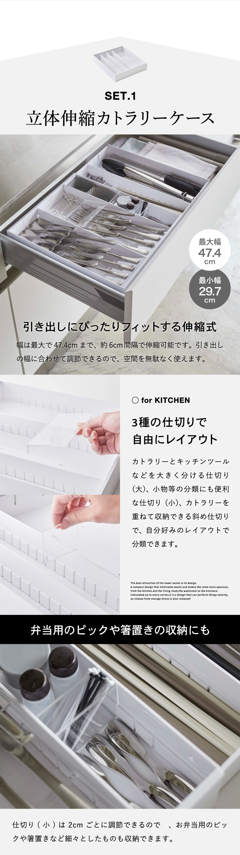 【 立体横伸縮カトラリーケース】