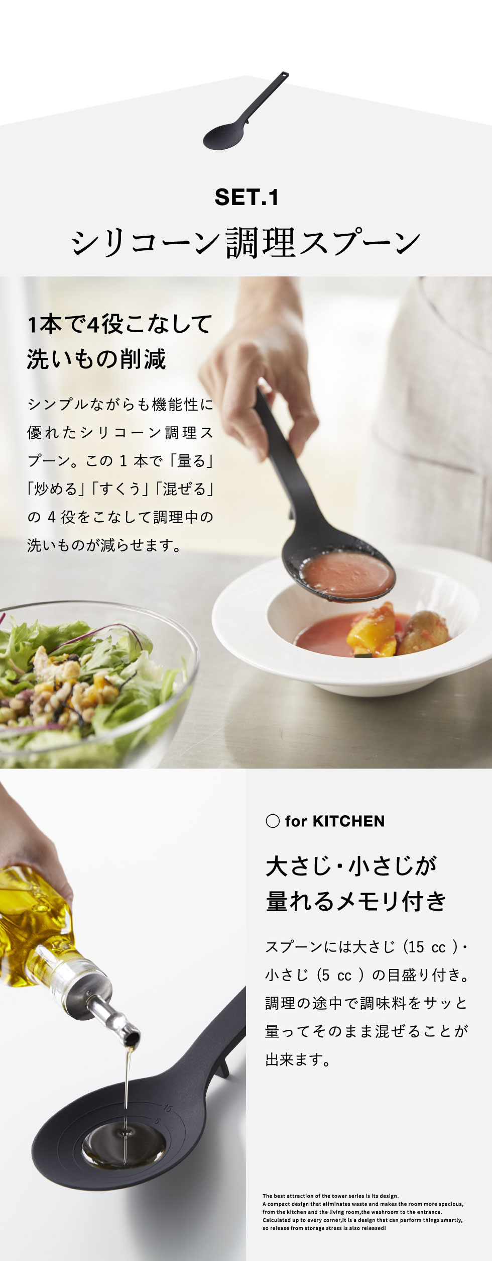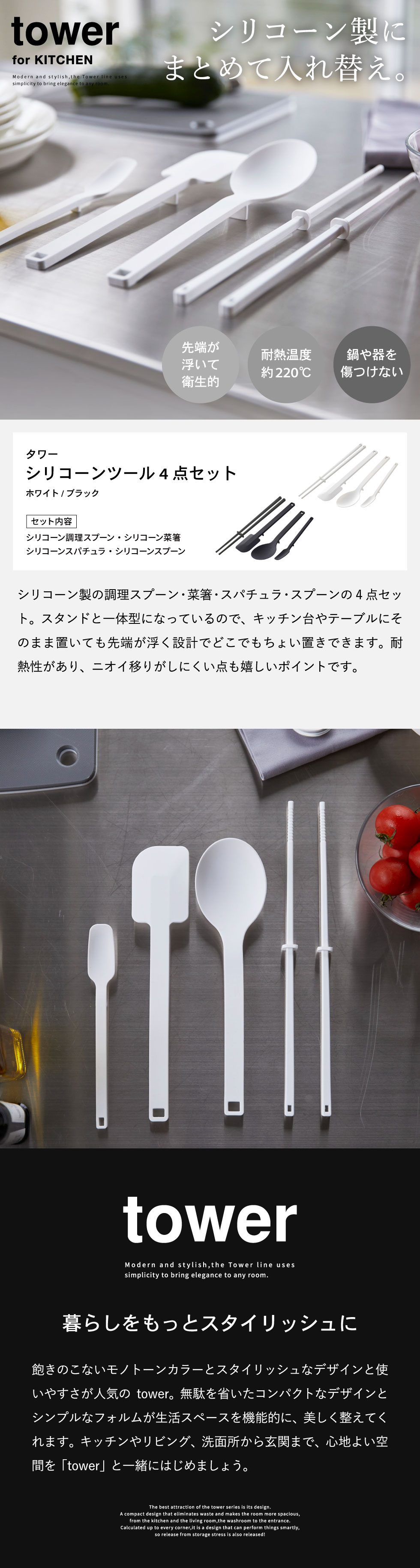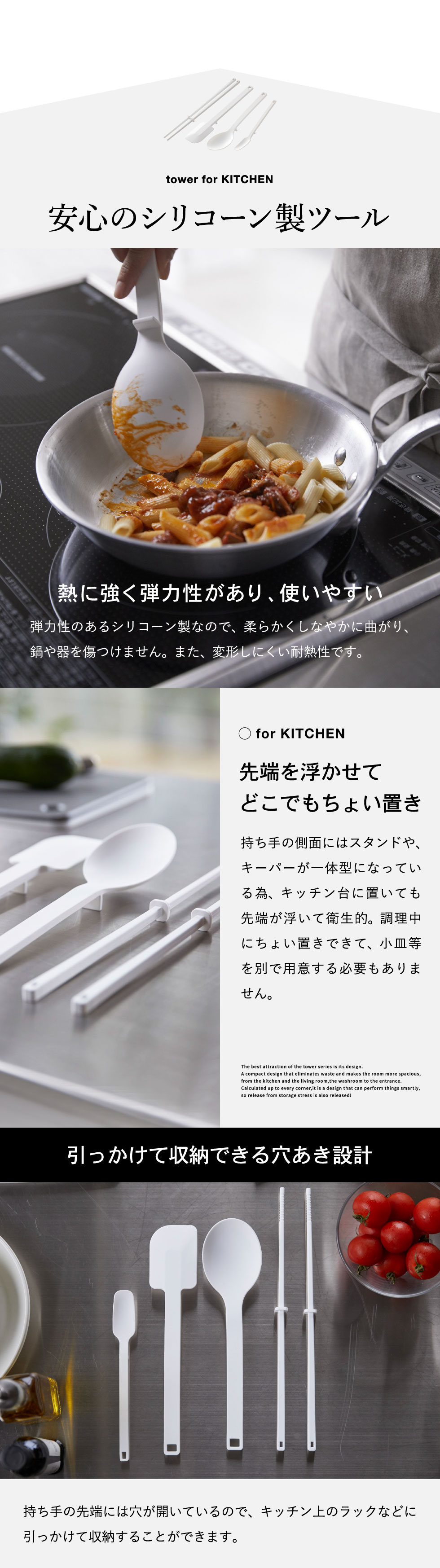 シリコーン調理スプーン・シリコーン菜箸・ シリコーンスパチュラ・シリコーンスプーン タワー 山崎実業 tower ホワイト/ブラック 4272 4273 4274 4275 4276 4277 4278 4279 タワーシリーズ